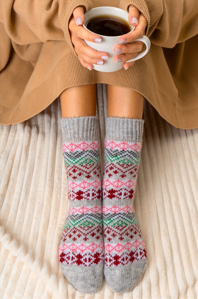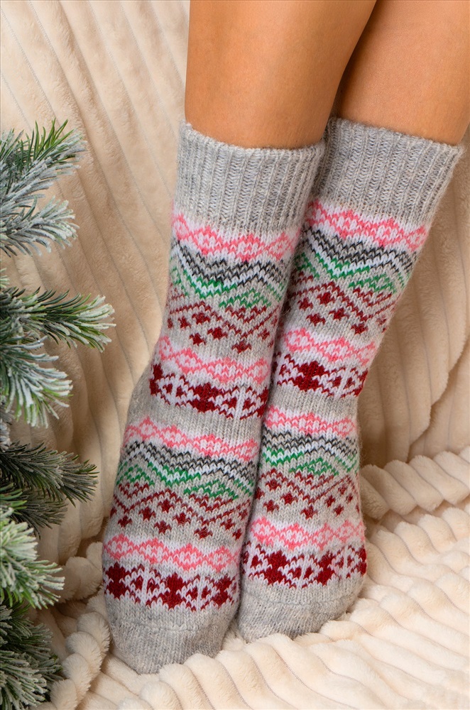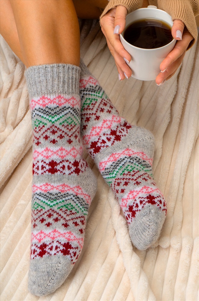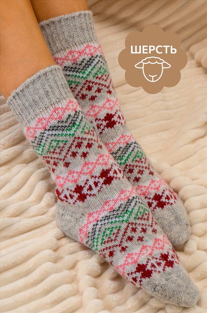 Теплые шерстяные носки для женщин выполнены из приятной к телу пряжи с высоким содержанием натуральной шерсти. Высокие носки с ярким орнаментом принесут не только тепло, но и радость в холодные дни. Вязаные носки подарят обладательнице исключительную мягкость и комфорт. Натуральная шерсть отлично сохраняет тепло и позволяет коже дышать, а акрил и полиамид добавляют прочности и эластичности. Высокие женские носки с широкой мягкой резинкой отлично держатся на ноге, мягко облегают, не передавливая в щиколотке. Красивые носочки универсального размера станут отличным дополнением к зимнему образу. Длинные носки из шерсти подойдут для женщин, которые ценят тепло и уют в зимний период, они идеальны для повседневного использования, а также для подарка на Новый год или Рождество. Комментарии к товару