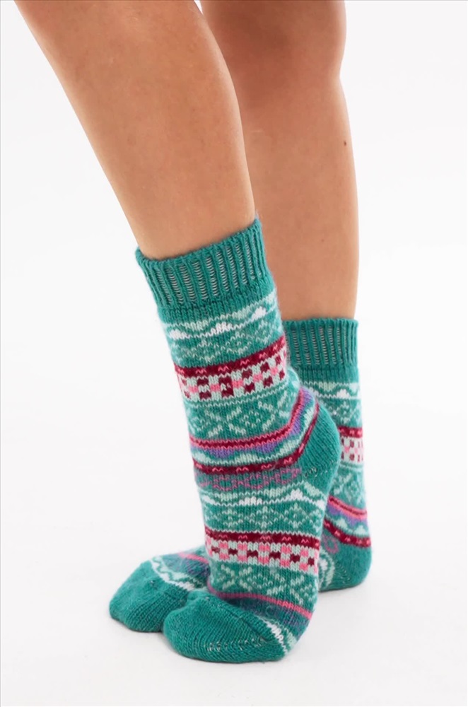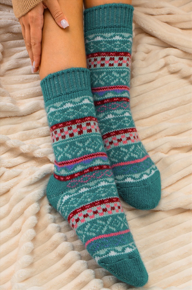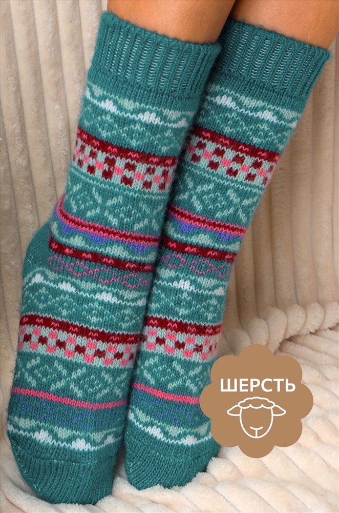 Теплые шерстяные носки для женщин выполнены из приятной к телу пряжи с высоким содержанием натуральной шерсти. Высокие носки с ярким орнаментом принесут не только тепло, но и радость в холодные дни.