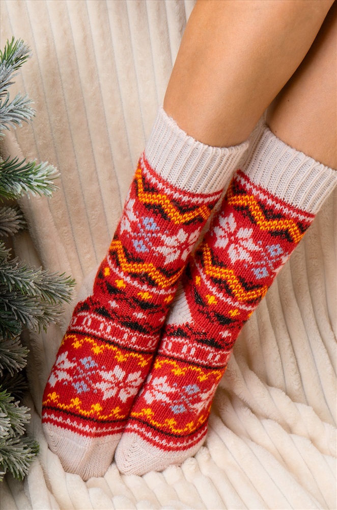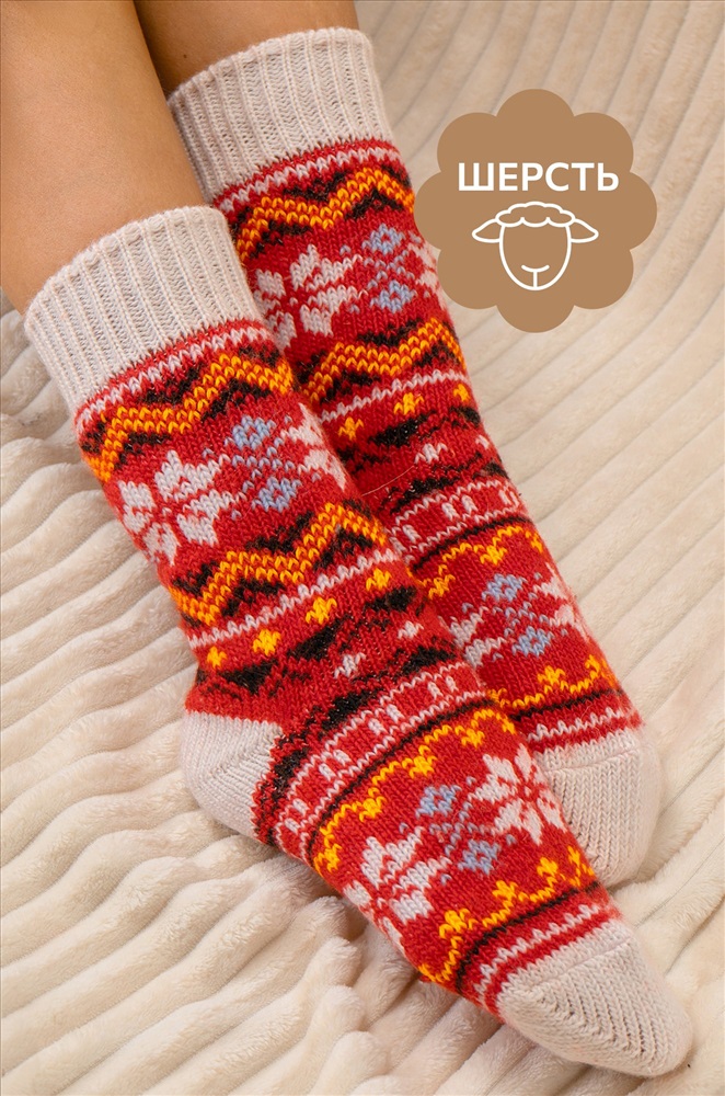 Теплые шерстяные носки для женщин выполнены из приятной к телу пряжи с высоким содержанием натуральной шерсти. Высокие носки с ярким узором принесут не только тепло, но и радость в холодные дни. Вязаные носки подарят обладательнице исключительную мягкость и комфорт. Натуральная шерсть отлично сохраняет тепло и позволяет коже дышать, а акрил и полиамид добавляют прочности и эластичности. Высокие женские носки с широкой мягкой резинкой отлично держатся на ноге, мягко облегают, не передавливая в щиколотке. Красивые носочки универсального размера станут отличным дополнением к зимнему образу. Длинные носки из шерсти подойдут для женщин, которые ценят тепло и уют в зимний период, они идеальны для повседневного использования, а также для подарка на Новый год или Рождество. Комментарии к товару