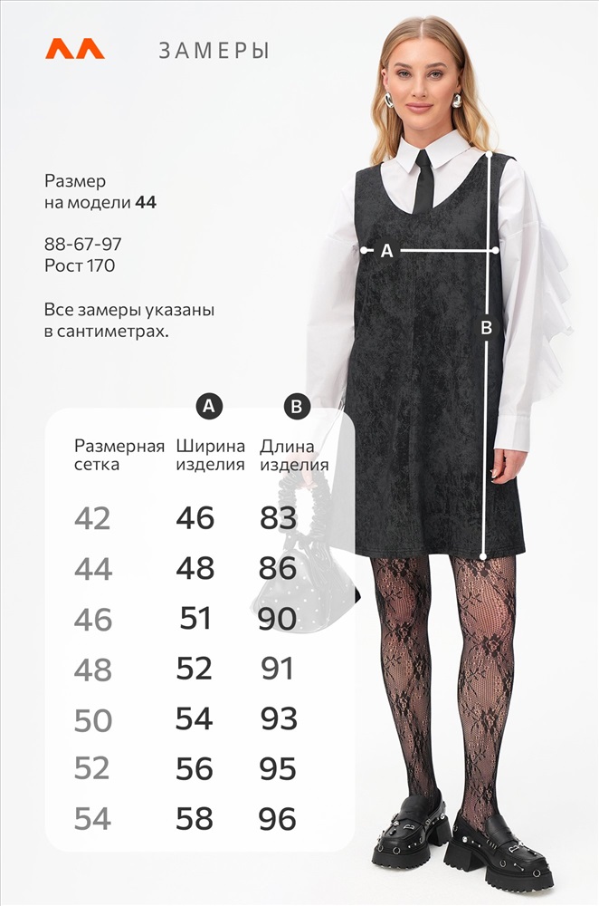 Размер 42: длина: 83 см; ширина: 46 см. Состав: 74% хлопок, 21% полиэстер, 5% лайкра