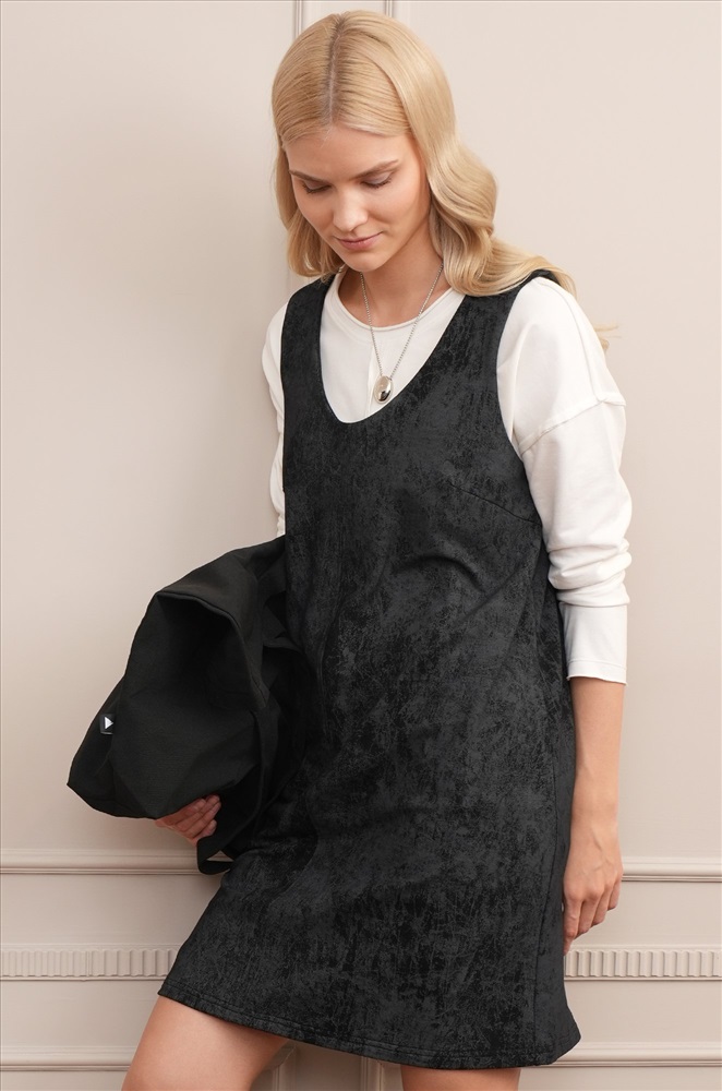 Женский сарафан с винтажным вареным эффектом создан, чтобы подчеркнуть изящество фигуры и подарить ощущение легкости. Базовый офисный сарафан — идеальный спутник для девушек, которые выбирают утонченность и свободу движений.
