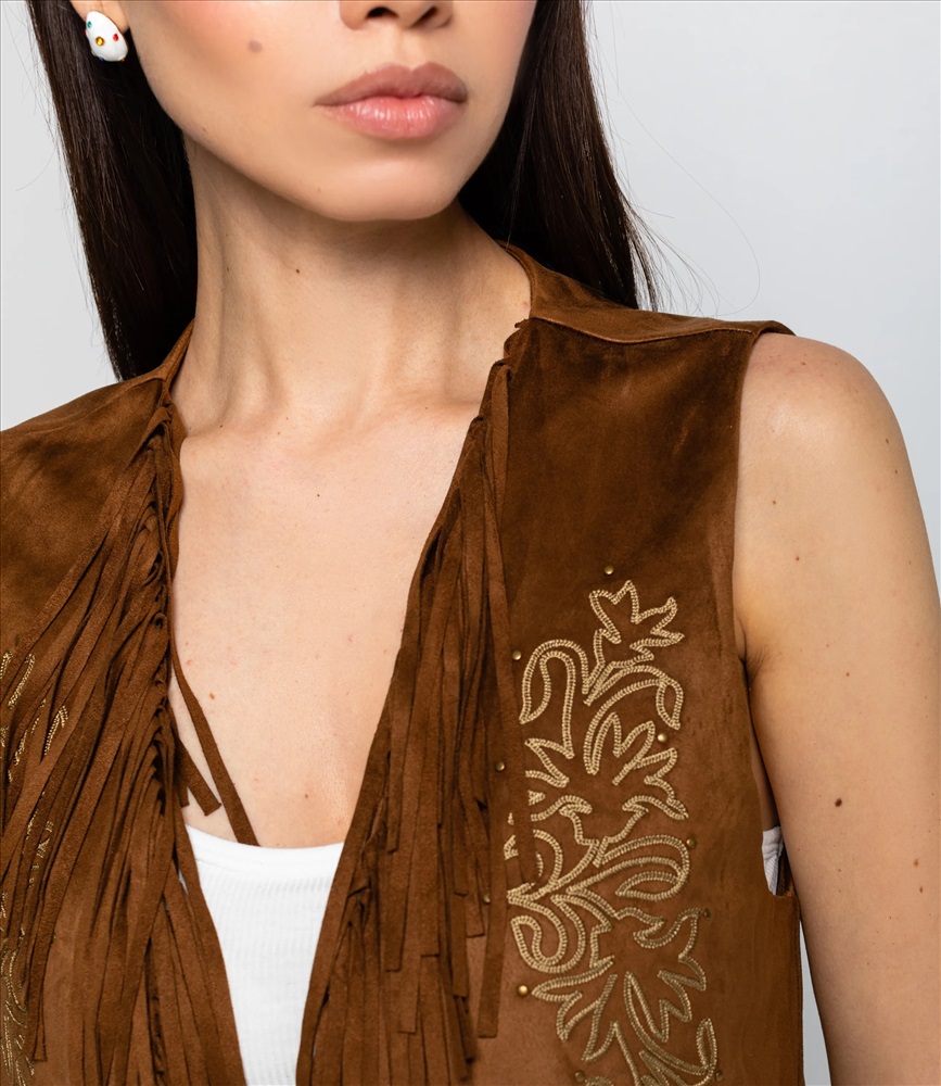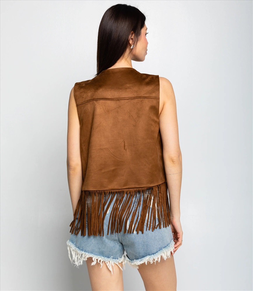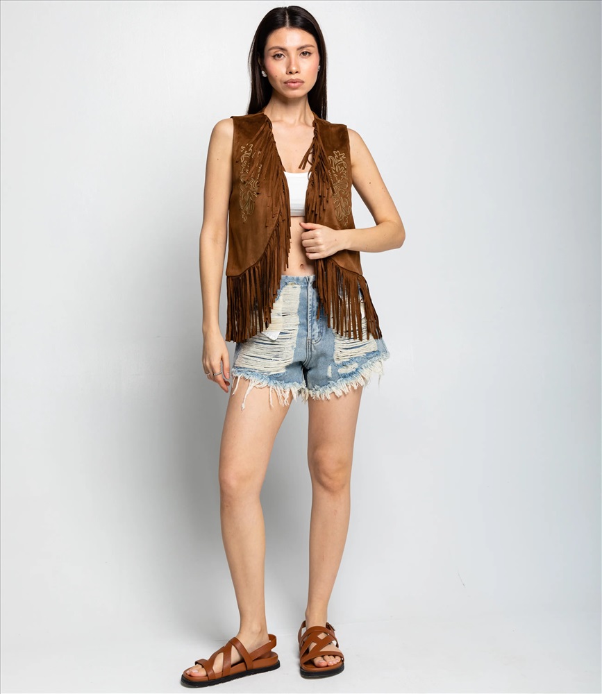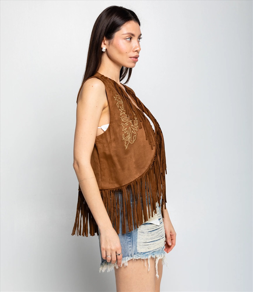 Пол: Женский Страна производитель: Китай Сезон: Всесезонный Материал: Полиэстер Жилетка — это одежда, которая подчёркивает женственность любой женщины. Модель отлично подойдёт для летнего сезона и будет востребована в ваших розничных магазинах. Её выбирают оптовые покупатели, которые ценят сочетание качества и цены. Фасон подчёркивает силуэт: жилетка выполнена прямым кроем без застёжек, отсутствие рукавов подчёркивает её многослойное назначение и удобно для сочетания с другими элементами гардероба. Модель изготовлена из 100% полиэстера с эффектом замши, материал отличается износостойкостью и простотой в уходе; изделие сохраняет внешний вид даже после многократных стирок. Жилетка украшена бахромой по нижнему краю и вдоль передних полочек, а также декоративным тиснением или вышивкой возле воротника, что придаёт изделию выразительный бохо-акцент и стильный вид. Цвета насыщенные и полностью соответствуют фотографиям на сайте. Для удобства подбора размера на странице размещена таблица: воспользовавшись ею, вы сможете самостоятельно снять мерки и убедиться в правильности выбора. Установленная оптовая цена выгодна; для оптовых клиентов действует гибкая система скидок и индивидуальные условия сотрудничества. Уточнить минимальный заказ и сроки поставки можно у менеджера. Предложите своим покупательницам универсальную и стильную жилетку, которая станет удачным пополнением ассортимента ваших магазинов. Рост модели 164 см., 83-61-89. Комментарии к товару