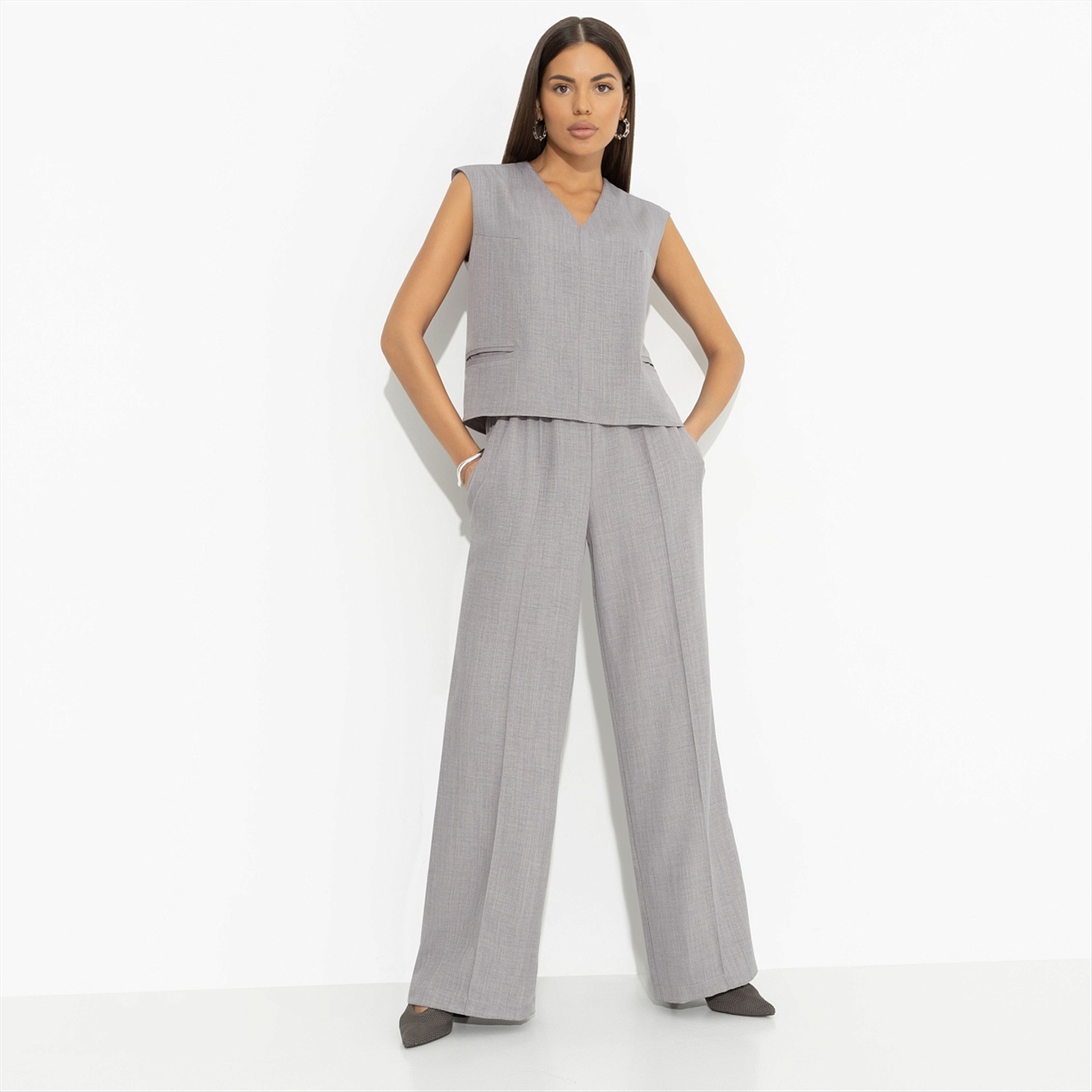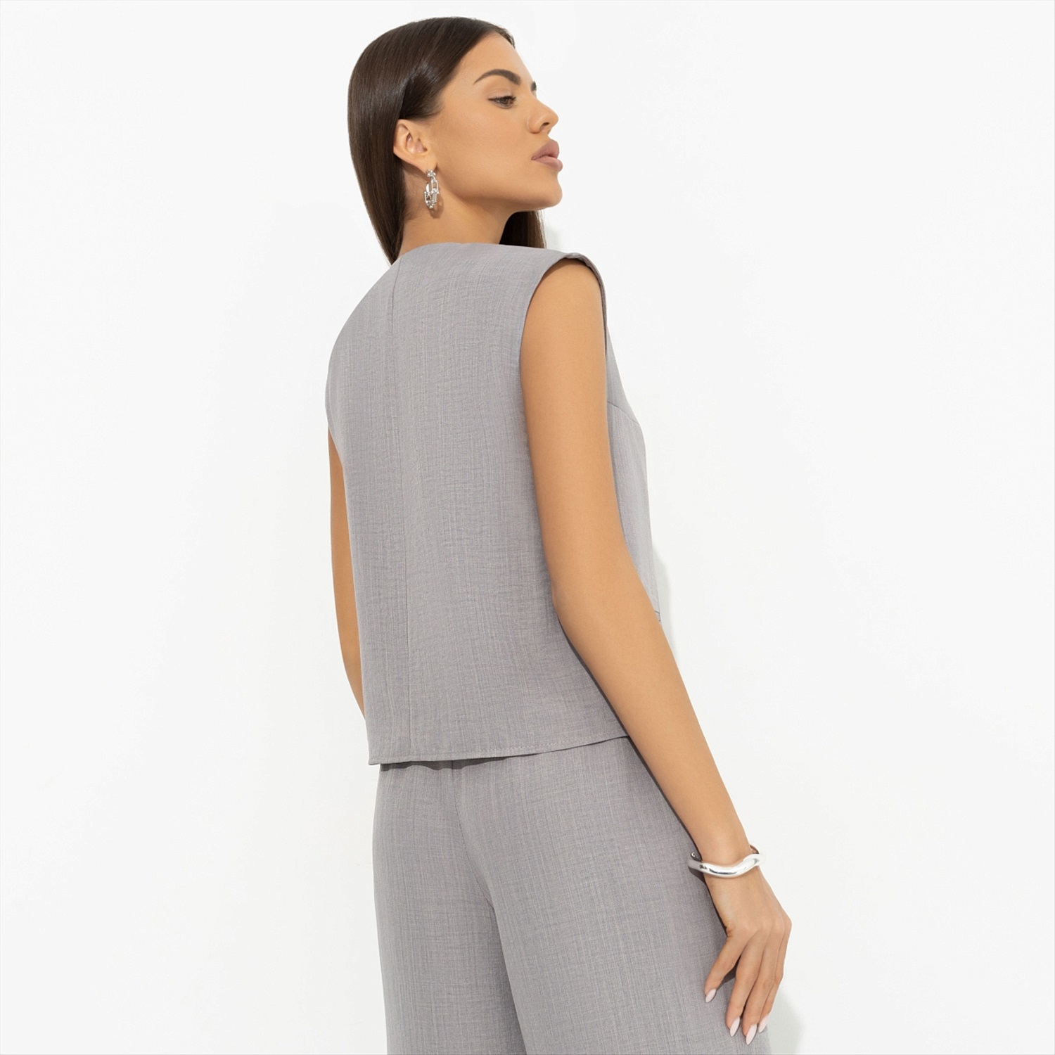 Одна из самых красивых историй любви – Синди Кроуфорд и Ричард Гир. Она – супермодель, он – успешный актер. От их союза буквально летели искры. Отдельного внимания заслуживают образы Синди. Она обожала открытые руки и точно носила бы жилет CHARUTTI. Жилет укороченный, свободный, из костюмной ткани. Есть карманы по передней части изделия.