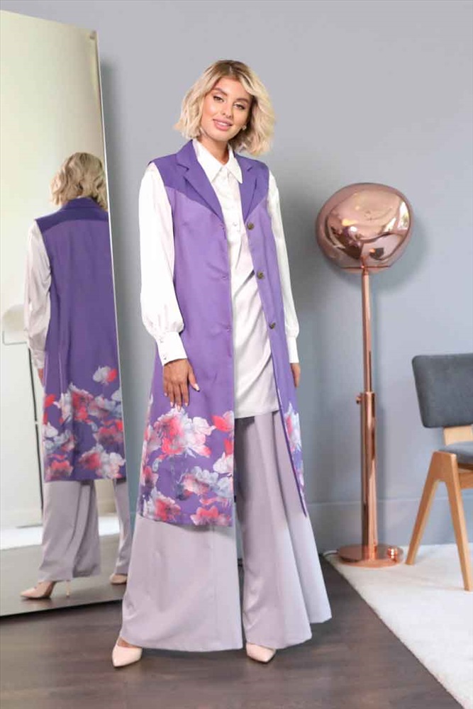По размеру: 42 Состав: Вискоза 65% Полиэстер 30% Эластан 5% ШтрихКод: 4650333174082 Скидка на сайте: 50% Срок готовности: 2019-04-07T00-00-00 Стильный жилет прямого силуэта из текстильного полотна фиолетового цвета с купонным рисунком по низу изделия. Вырез жилета обработан отложным воротничком. Перед изделия дополнен планкой с застежкой на пуговицы. Аксессуары в комплект не входят. Длина изделия по спинке от плечевого шва до низа изделия — 112 см. Рост фотомодели — 170 см. Комментарии к товару
