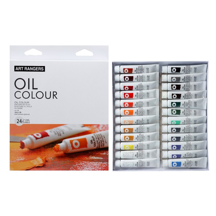 Набор кистей для рисования, синтетика, 6 штук: № 2, 4, 6, 8, 10, 12, плоские, скошенные, с цветными ручками, международный размер