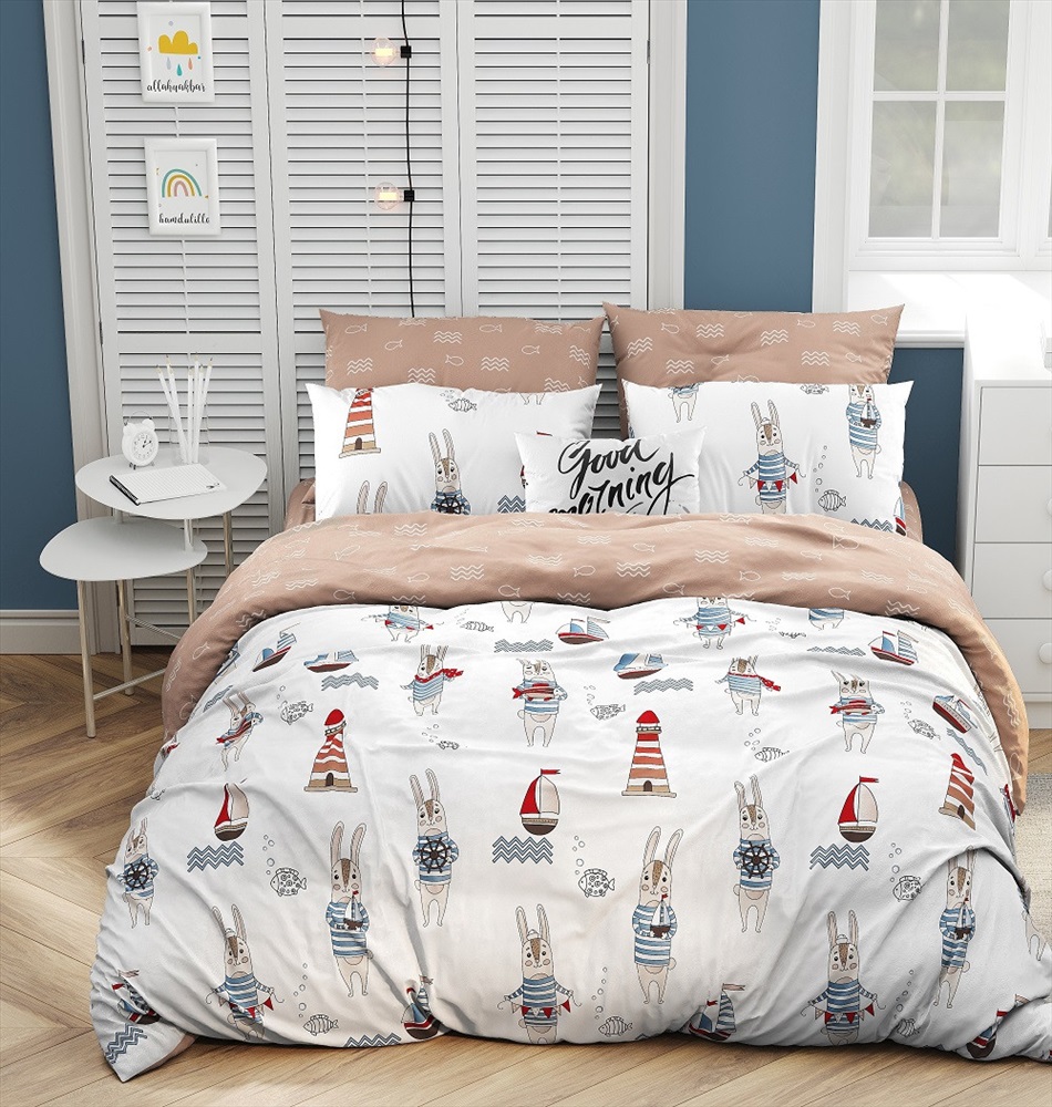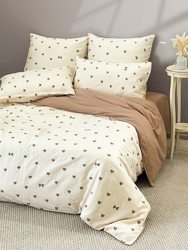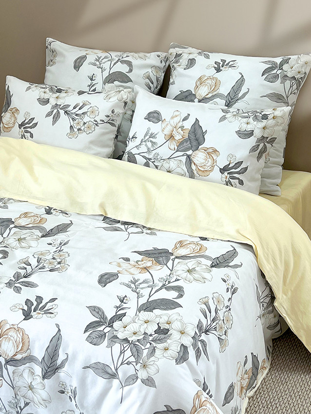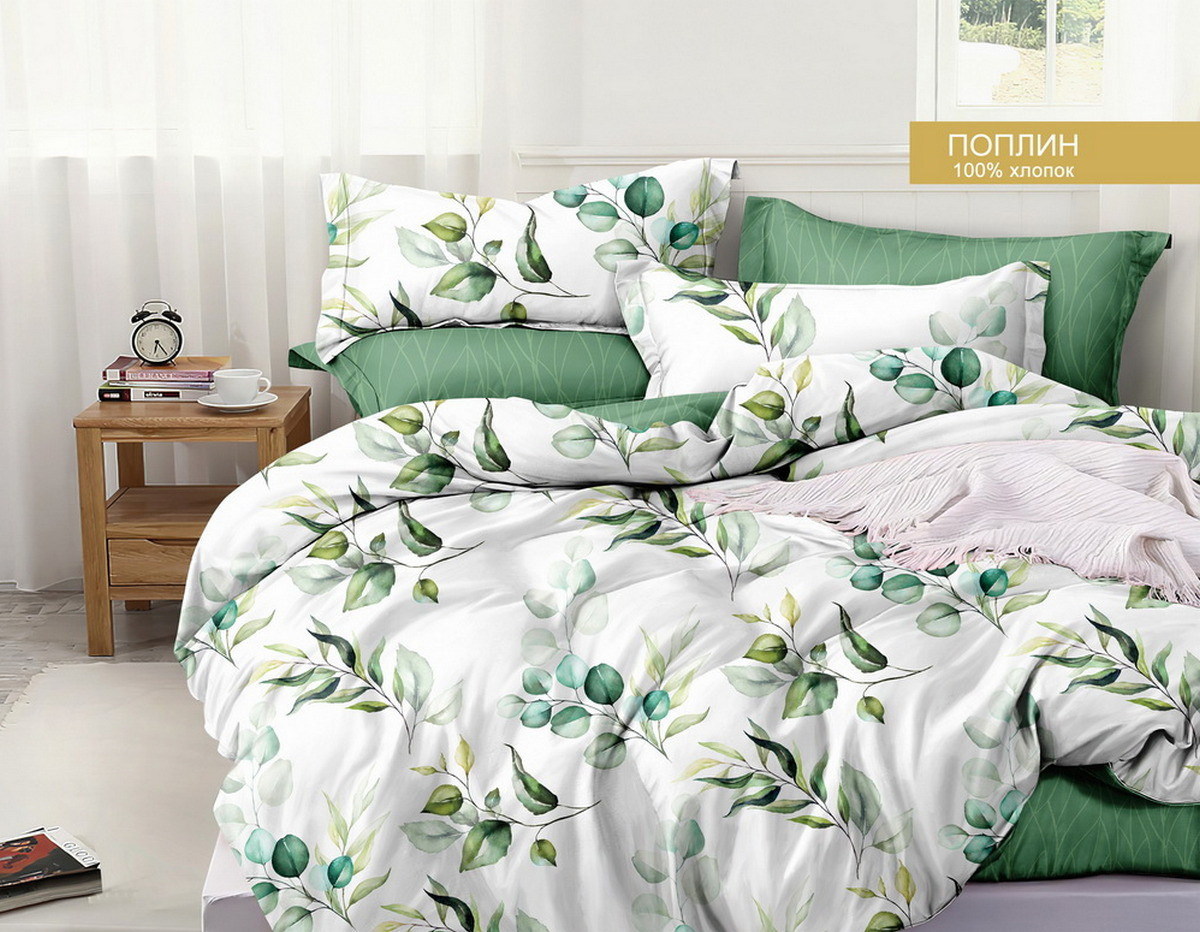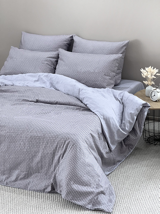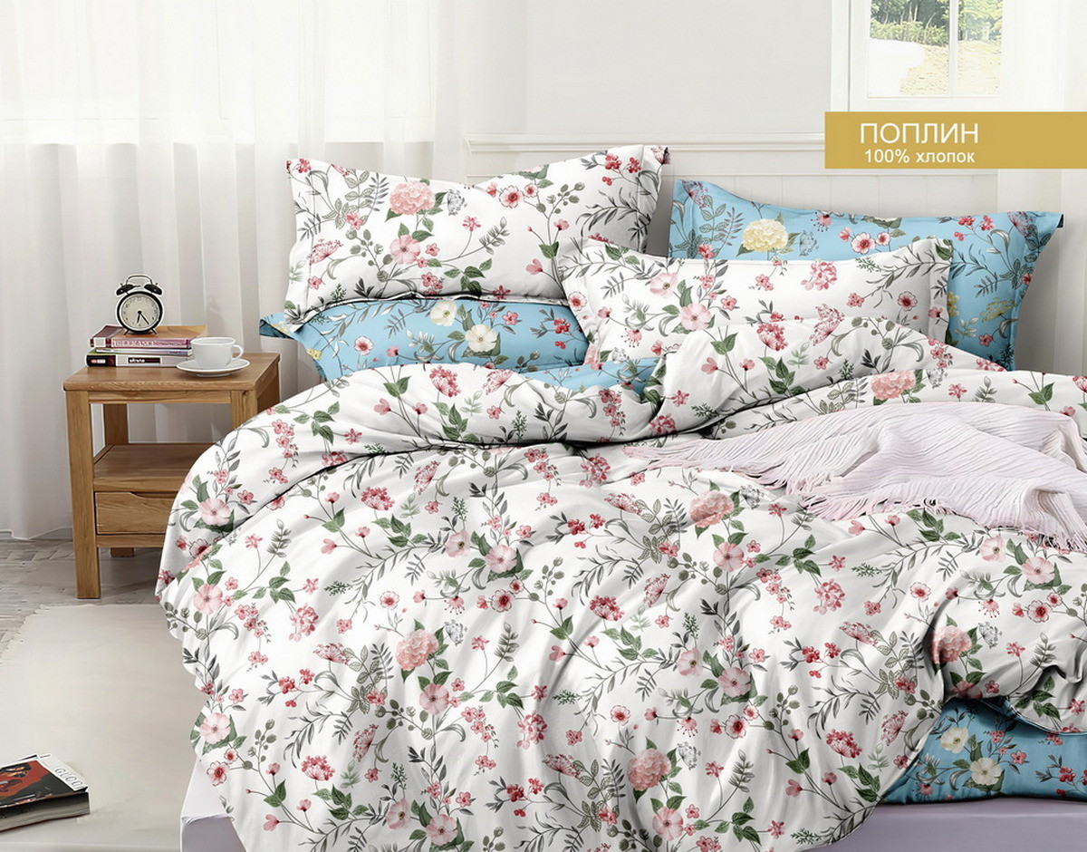 В набор входят наволочки, простыня и легкое всесезонное одеяло.