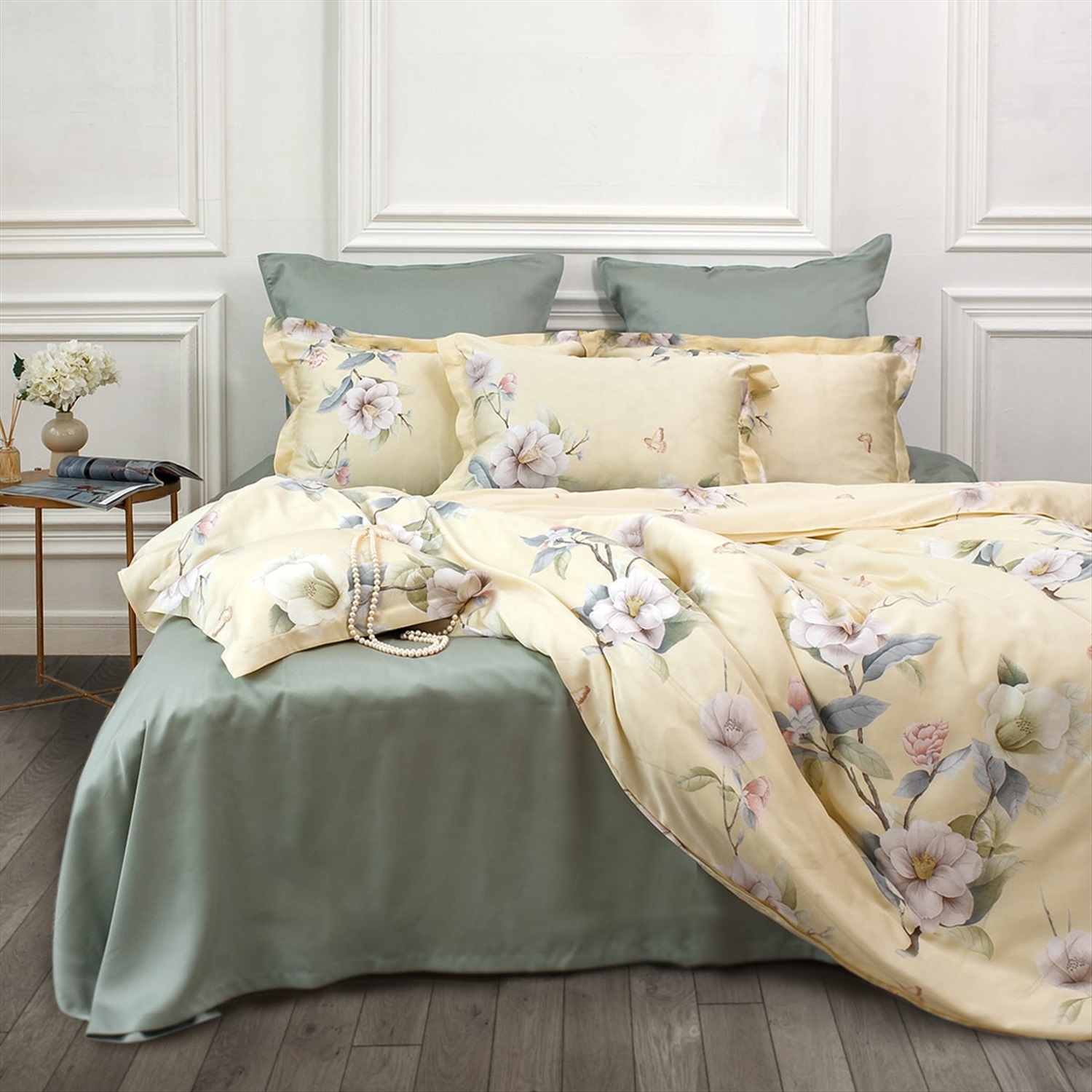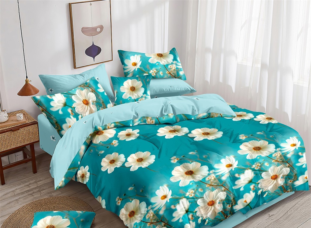 В набор входят наволочки, простыня и легкое всесезонное одеяло.