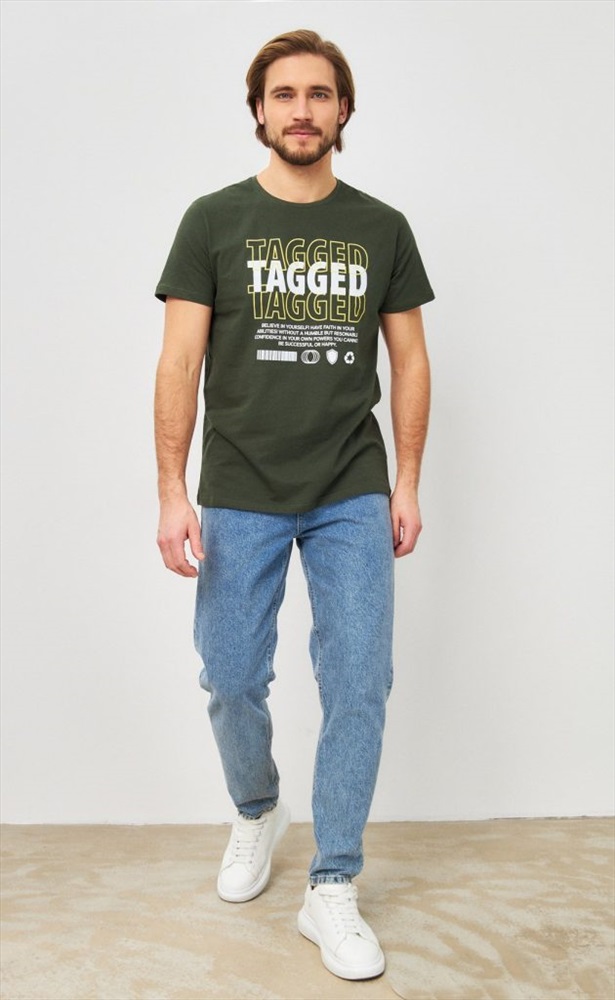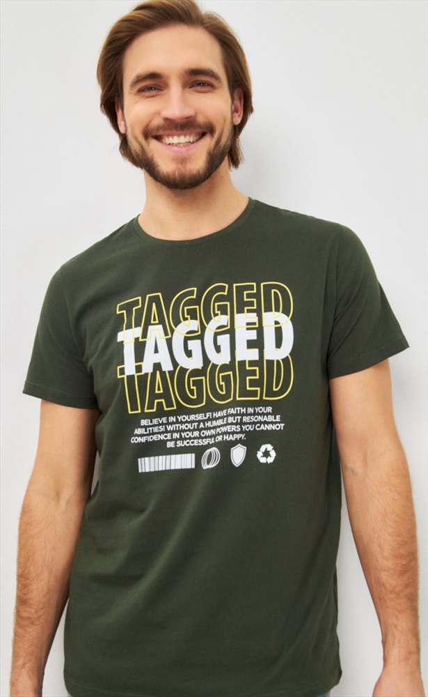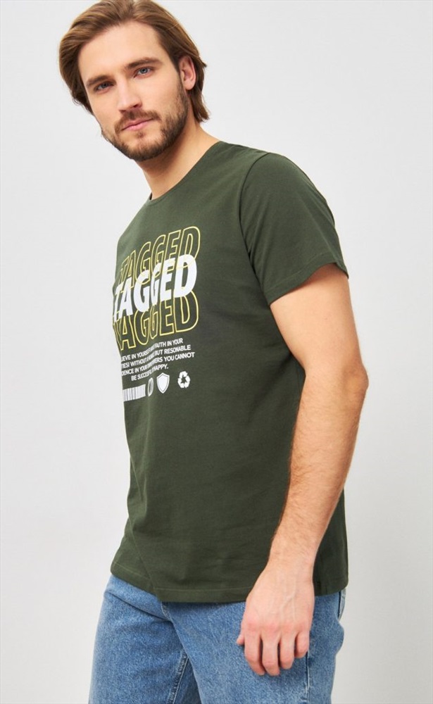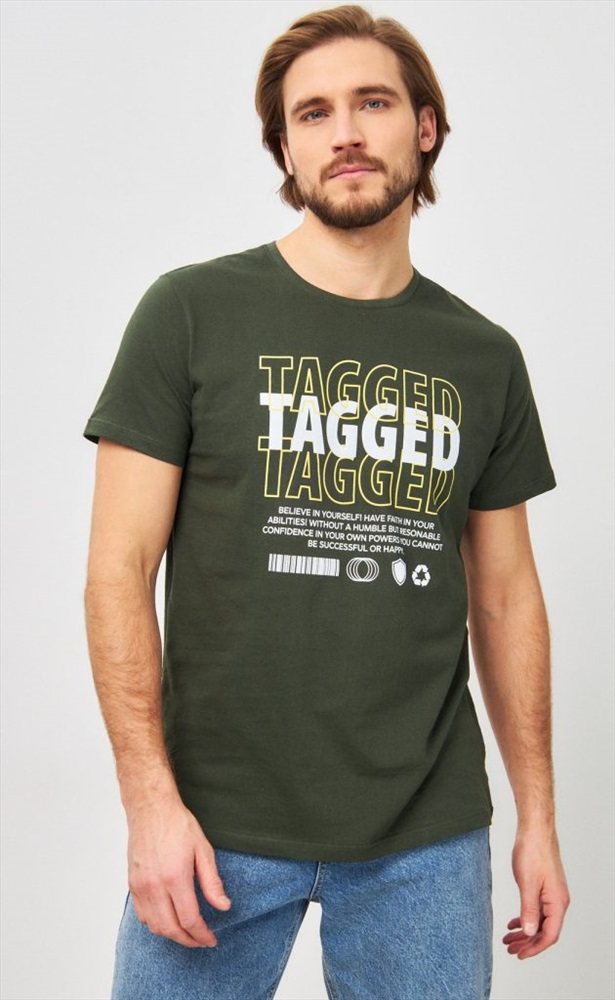 Футболка мужская с принтом P411-06-847 хаки 10 фото