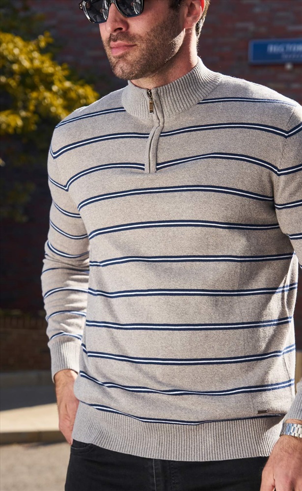 Джемпер мужской с воротом на молнии F121-15-12032 тёмно-синий 10 фото