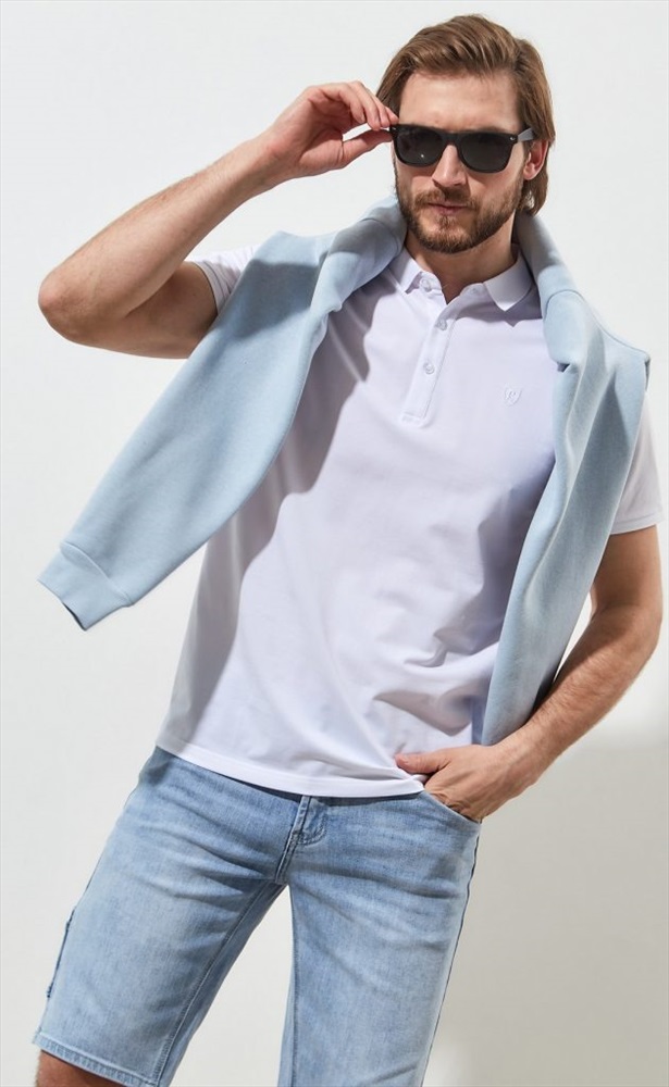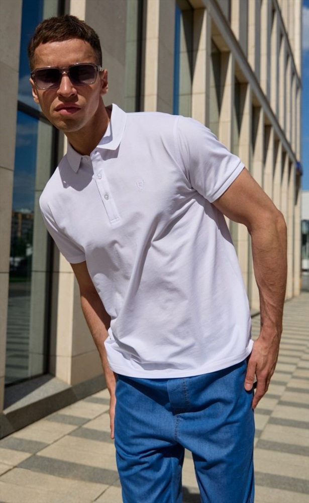 Футболка-поло мужская однотонная P211-07-243 белая 10 фото