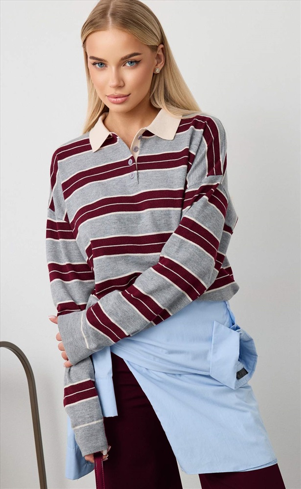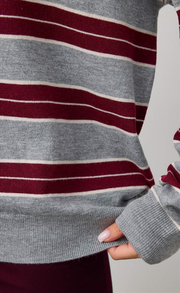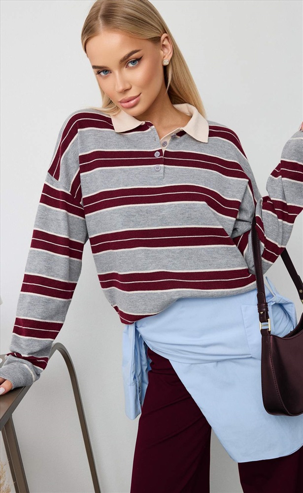 Джемпер женский с воротником на молнии в полоску F322-15115 бело-черный 8 фото