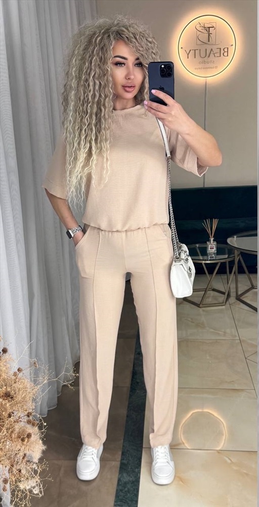 Костюм на фото и костюм тот что пришел из серии ожидание/реальность. Пришел из дешевой ткани как у детского постельного белья. Из сходства- только цвет. На улицу в таком не выйти это точно. Полное разочарование. Потеря времени и денег