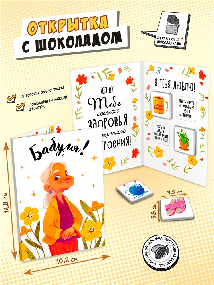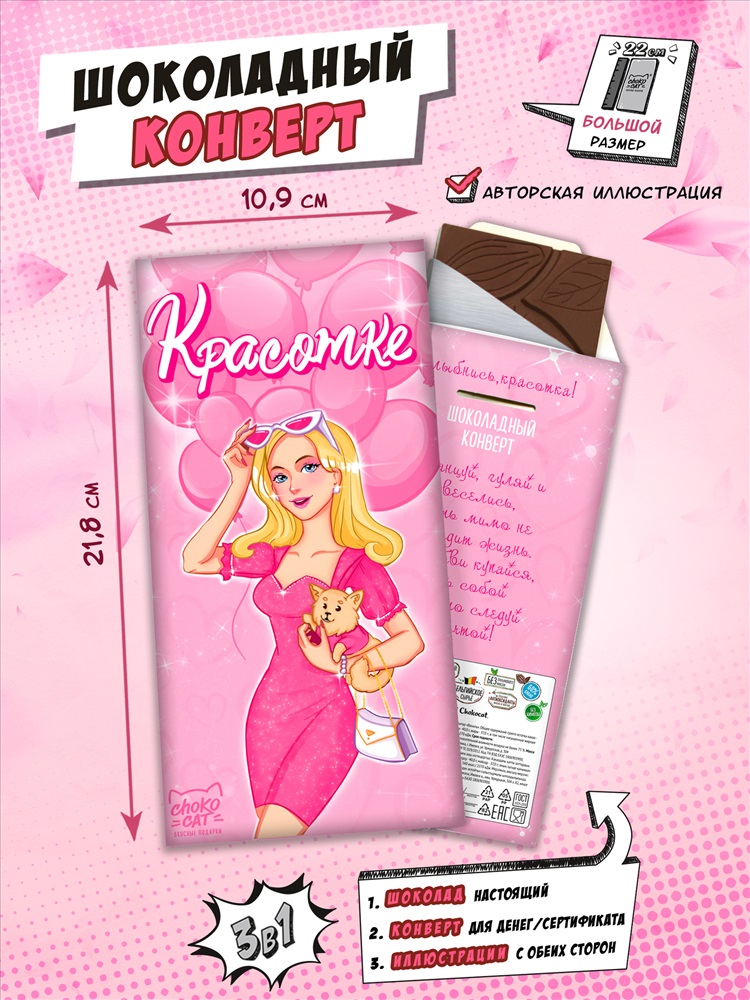 Состав: Какао тёртое, сахар, какао масло, эмульгатор лецитин, натуральный ароматизатор «Ваниль». Общее содержание сухого остатка какао — не менее 36,8%.