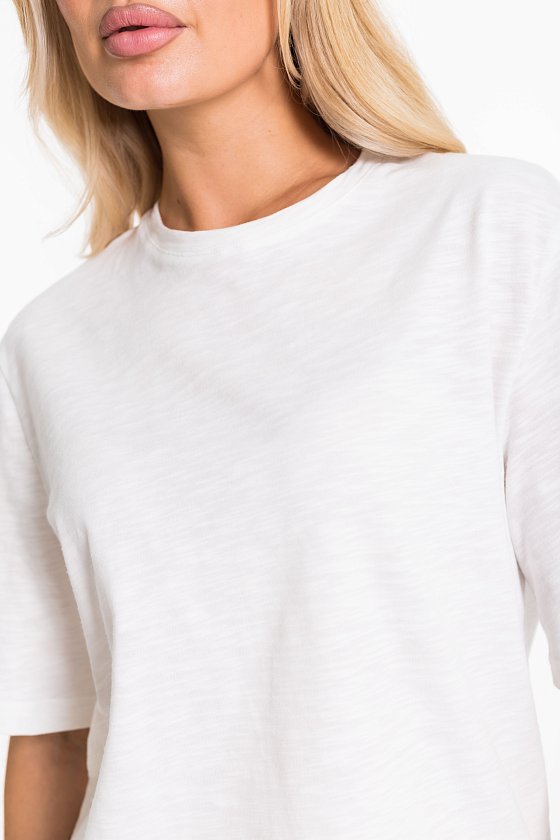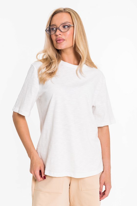 Классная футболка! Эффект варенки! Размер в самый раз, не узко и не сильно свободно. Пройма удобная. Размер в размер. И качество очень приятное к телу! Цвет теплый и яркий, и очень освежает.