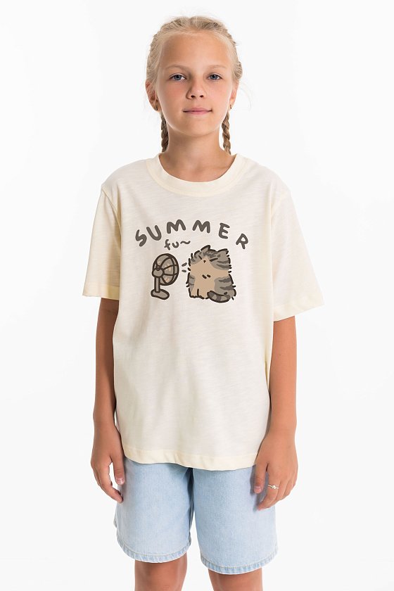 Классная футболка! Эффект варенки! Размер в самый раз, не узко и не сильно свободно. Пройма удобная. Размер в размер. И качество очень приятное к телу! Цвет теплый и яркий, и очень освежает.
