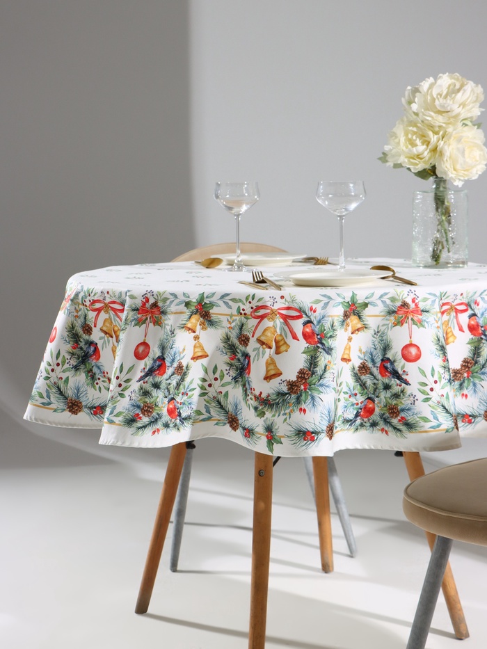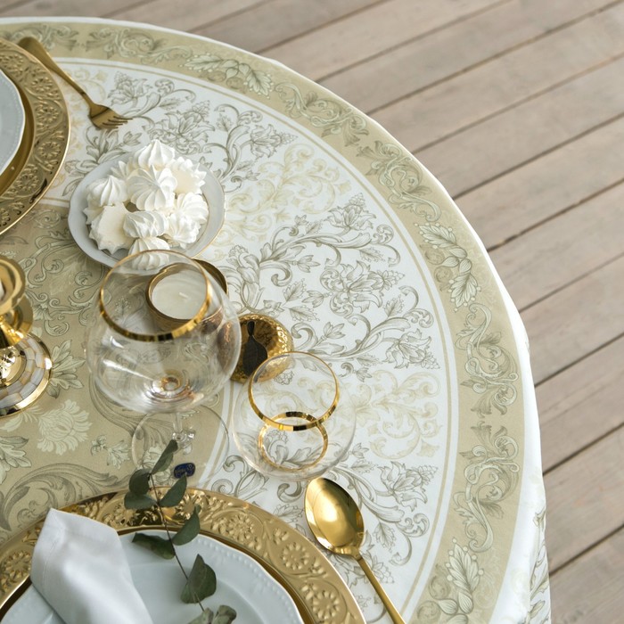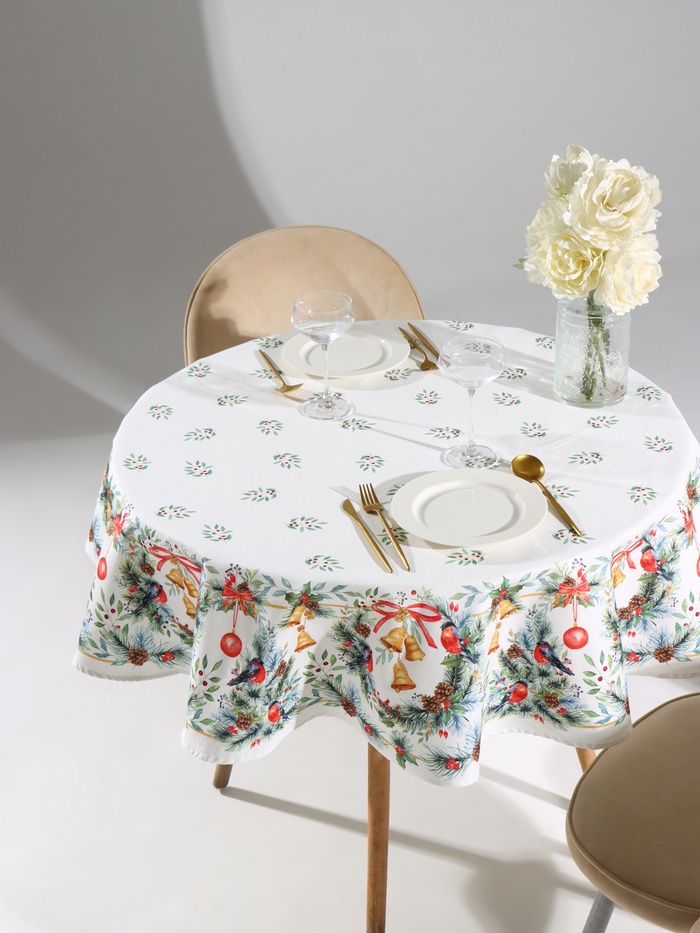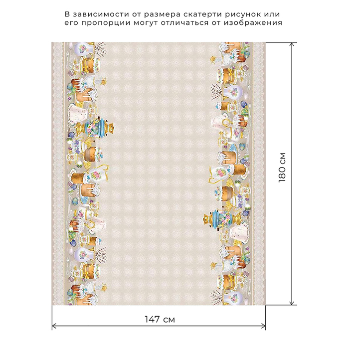 Размер: 150×110 ±2 см, 150×110 см, 4 салфетки, 150×180 ±2 см, 150×180 см, 8 салфеток, 150×220 ±3 см, 150×220 см, 12 салфеток, d=220 см