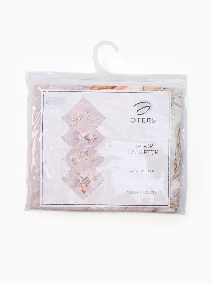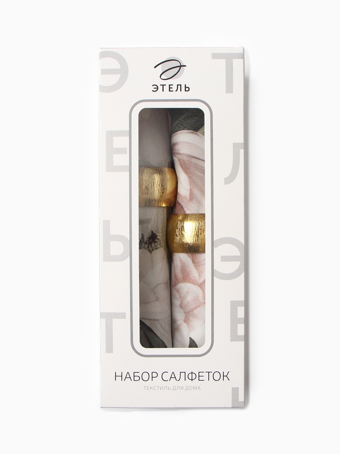 Набор салфеток с декоративными кольцами «Этель. Пионы» 40×40 см - 2 шт., 100% хлопок, саржа 190 г/м²