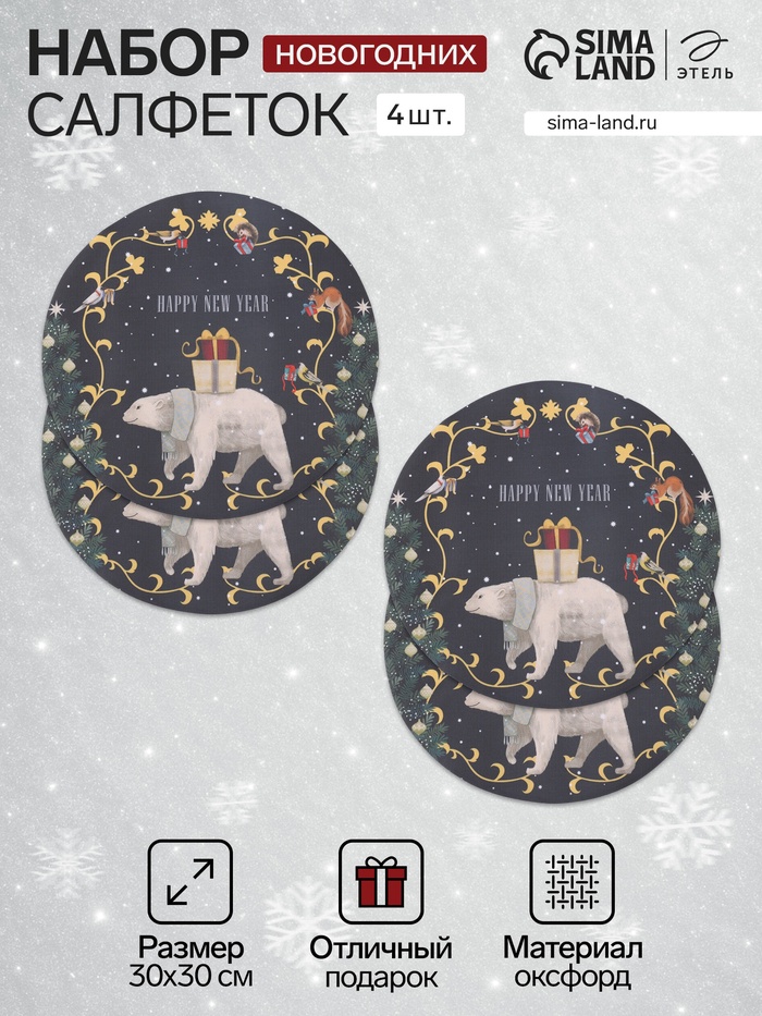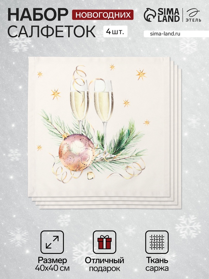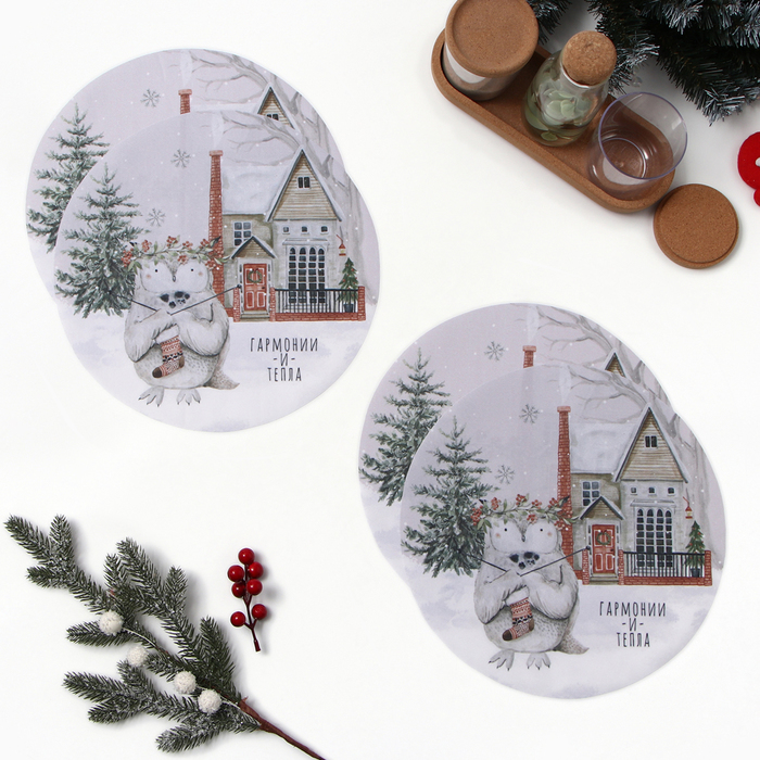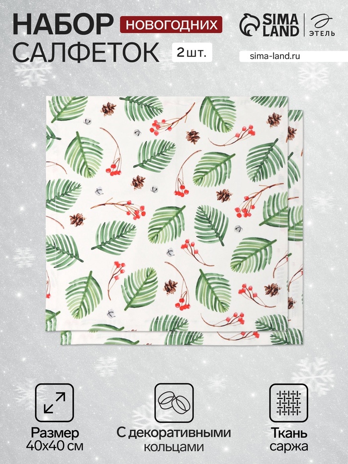 Набор салфеток сервировочных «Этель» Christmas wreath, 40×40 см - 4 шт., 100% хлопок, саржа 190 г/м²
