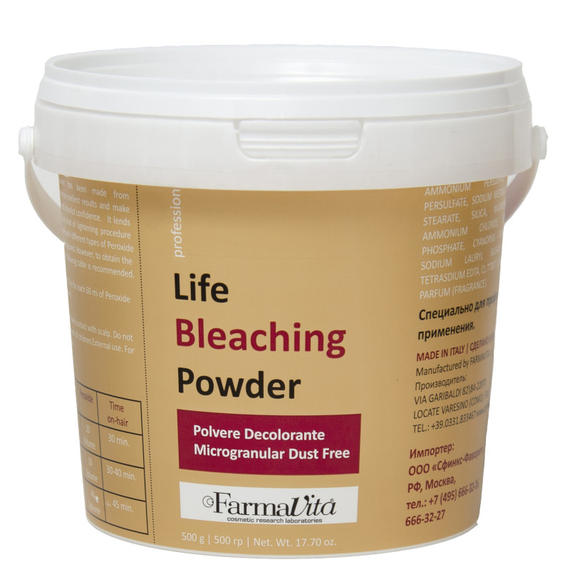 Farmavita Life Bleaching Powder Обесцвечивающая белая пудра микрогранулированная 500 гр
