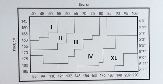 Размерная сетка: