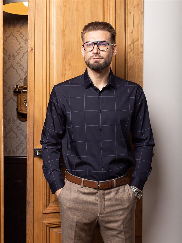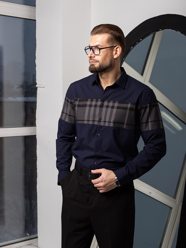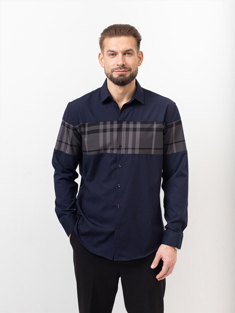 007J Мужская рубашка JenTa темно-синий