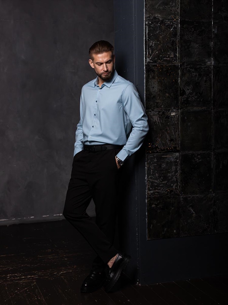 017J Мужская рубашка JenTa голубой