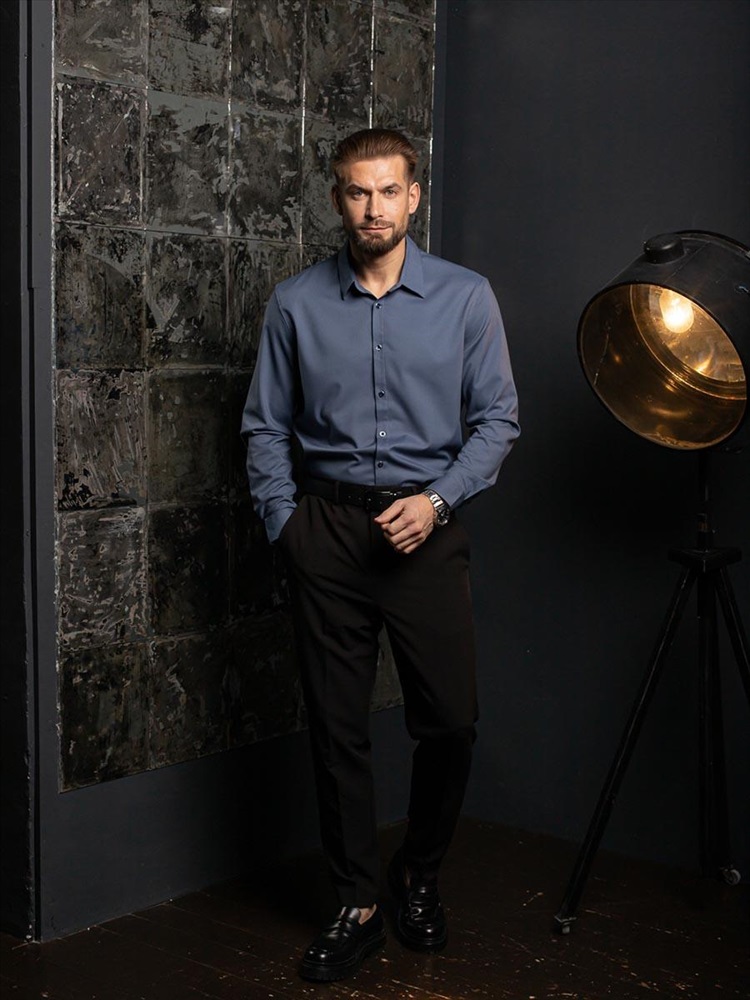 002J Мужская рубашка JenTa серо-голубой