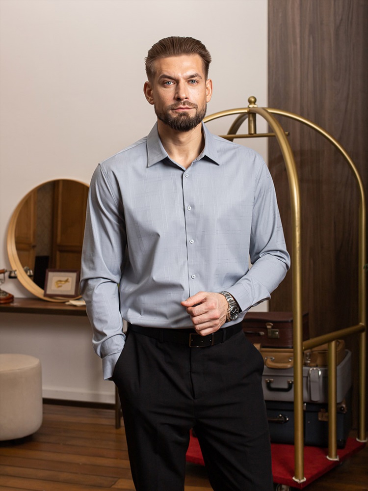 004J Мужская рубашка JenTa светло-серый