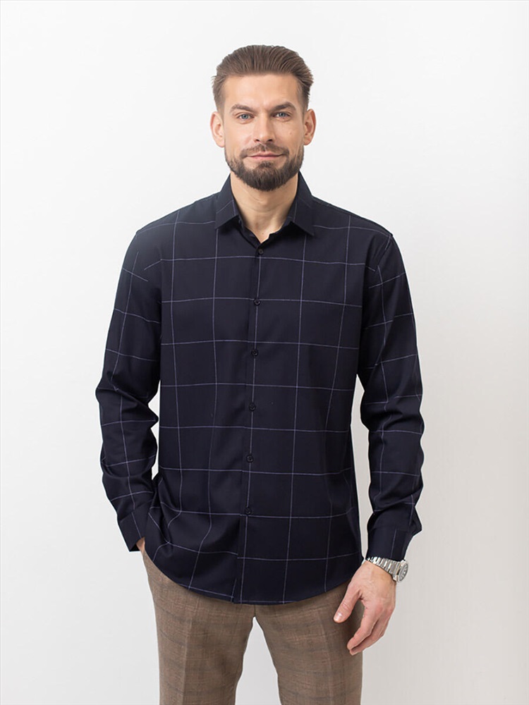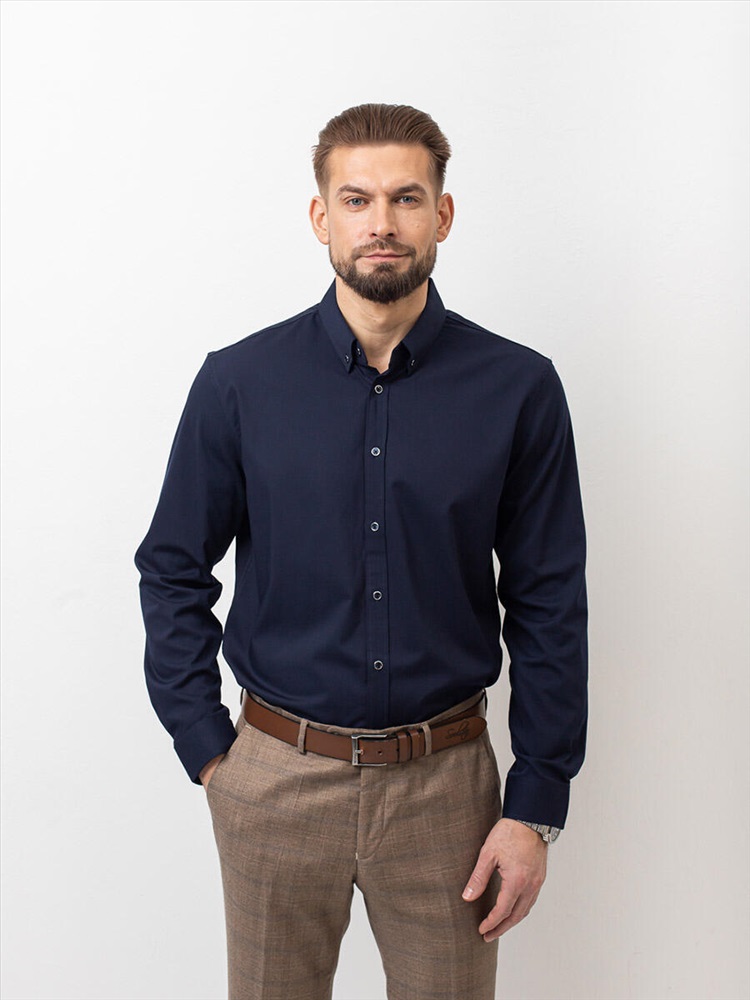 011J Мужская рубашка JenTa темно-синий