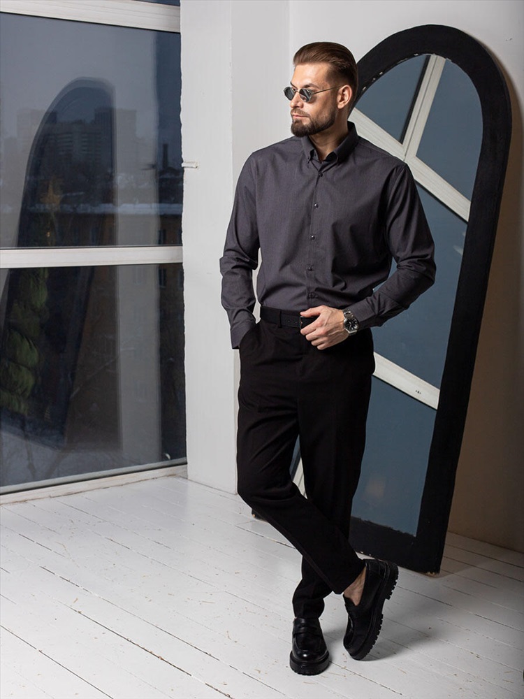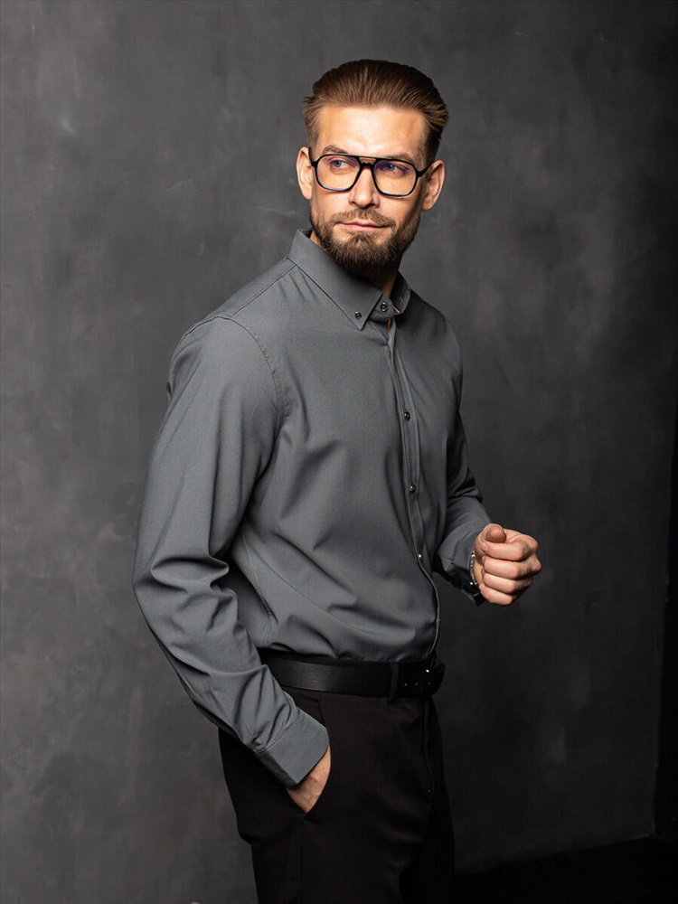 001J Мужская рубашка JenTa темно-серый