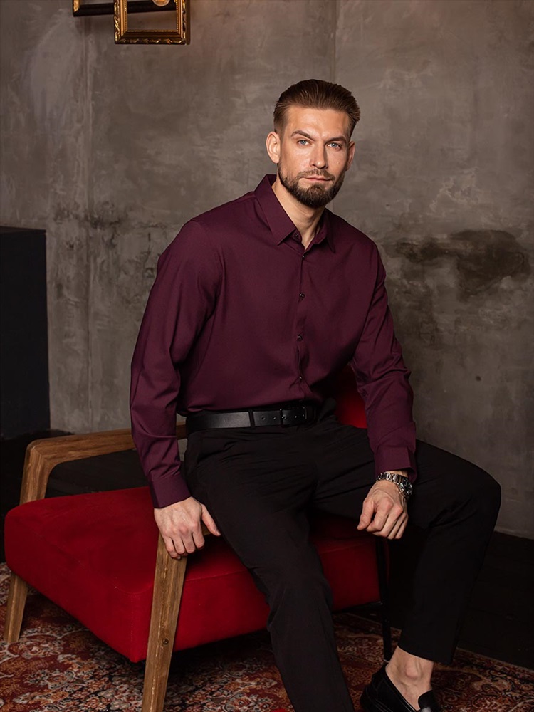 004J Мужская рубашка JenTa бордовый