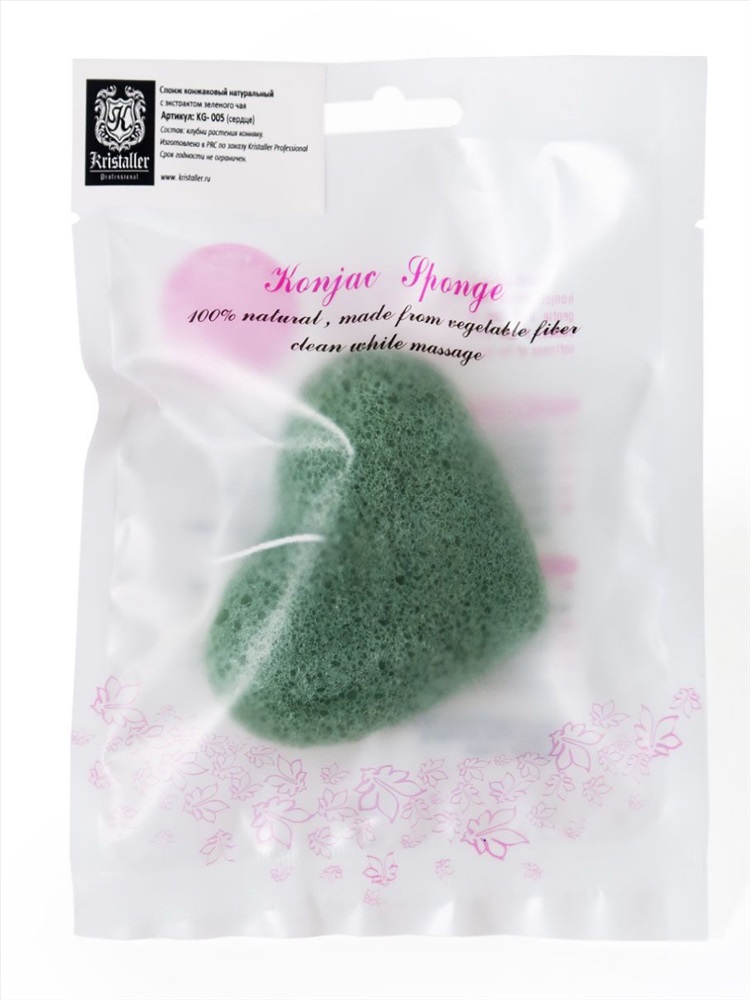 Kristaller Спонж конжаковый с экстрактом зеленого чая / KG-005, сердце 3 фото