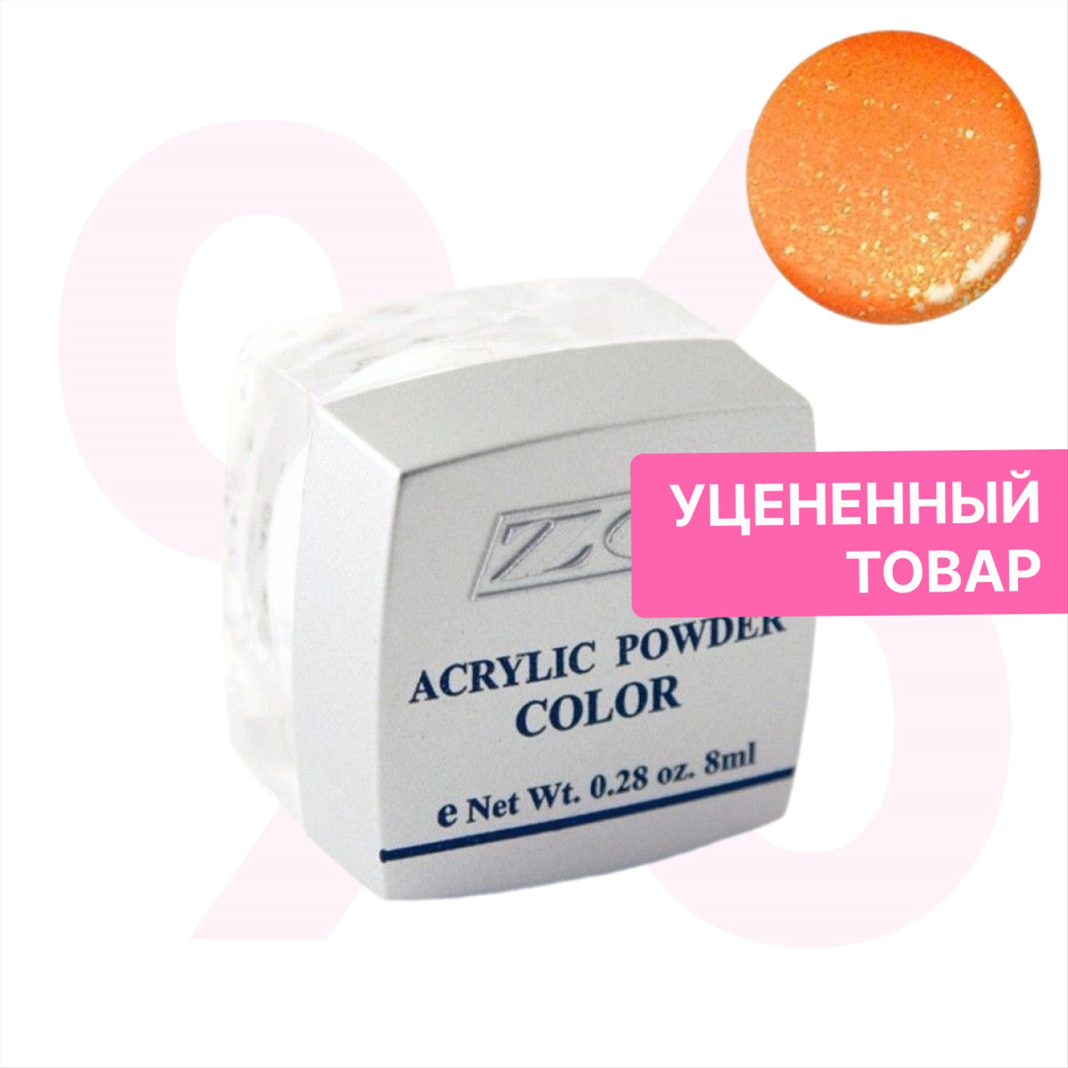 ZO Акриловая пудра для дизайна ногтей PC-18, оранжевый, голография, 8 г 2 фото