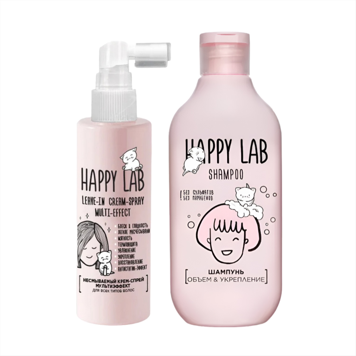 Happy Lab Набор средств для ухода за волосами / Шампунь «Объем & Укрепление» + Крем-спрей мультиэффект, 300 мл, 200 мл 2 фото