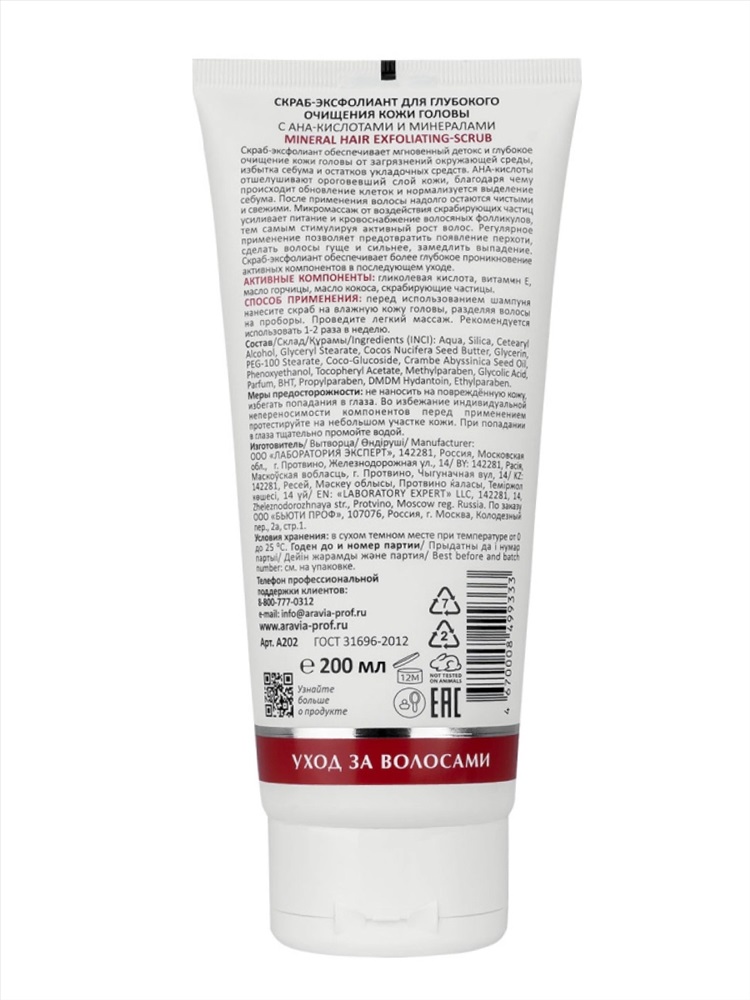Aravia Laboratories Скраб-эксфолиант для глубокого очищения кожи головы с АНА-кислотами и минералами, 200 мл 3 фото