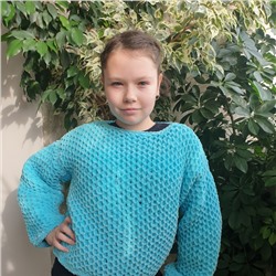 Заказала у девочек плюшевую пряжу HIMALAYA DOLPHIN BABY. Она чудесная! :о))) Сама нить довольно толстая, но вязать приятно. Нужно только учитывать нюансы плюшевой пряжи. Не любая вязка смотрится хорошо. Я выбрала объемные соты и связала доче кофточку свободного кроя. Она оооочень довольная! Смотрите...