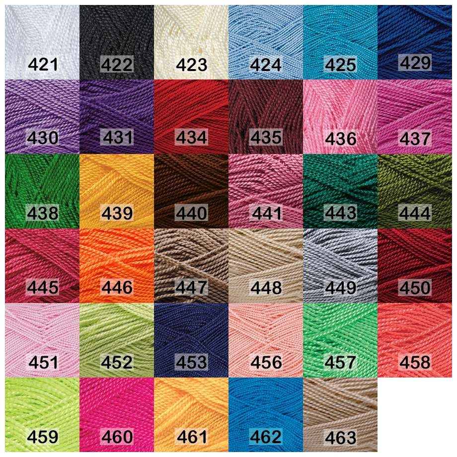 Цвет : 421 ОТБЕЛКА, 422 ЧЕРНЫЙ, 423 МОЛОЧНЫЙ, 424 НЕБЕСНЫЙ, 425 БИРЮЗА, 429 ЯР.СИНИЙ, 430 СВ.ФИОЛЕТОВЫЙ, 431 ФИОЛЕТОВЫЙ, 434 АЛЫЙ, 435 ВИННЫЙ, 436 РОЗОВЫЙ, 437 Т.РОЗОВЫЙ, 438 ЯР.ЗЕЛЕНЬ, 439 ЖЕЛТОК, 440 Т.КОРИЧНЕВЫЙ, 441 ЩЕРБЕТ, 443 ИЗУМРУД, 444 БОЛОТНЫЙ, 446 ЯР.ОРАНЖЕВЫЙ, 447 Т.БЕЖЕВЫЙ, 448 СВ.БЕЖЕВЫЙ, 449 СЕРЫЙ, 450 КРАСНЫЙ, 451 СВ.РОЗОВЫЙ, 452 ФИСТАШКА, 453 ДЖИНС, 456 СВ.КОРАЛЛ, 457 ЯР.МЯТА, 458 ЯР.КОРАЛЛ, 459 ЯР.ЛАЙМ, 460 ЯР.РОЗОВЫЙ, 461 ЖЕЛТЫЙ, 462 Т.ГОЛУБОЙ, 463 ХОЛОДНЫЙ БЕЖЕВЫЙ