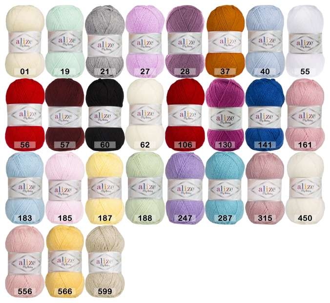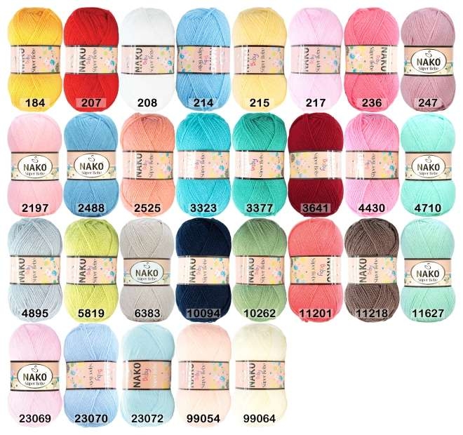 Цвет : 00184 ЖЕЛТЫЙ, 00207 ОГНЕННО-КРАСНЫЙ, 00214 СЕРОВАТО-ГОЛУБОЙ, 00215 ЖЕЛТЫЙ, 00217 ЧЕРНЫЙ, 00247 ПЮСОВЫЙ, 02197 ДЕТСКИЙ РОЗОВЫЙ, 02488 БЛ.СИНИЙ, 02525 ЛОСОСЕВЫЙ, 04710 МЕНТОЛ, 10262 ФИСТАШКА, 11201 КОРАЛЛОВЫЙ, 11218 СВ.КОРИЧНЕВЫЙ, 11627 СВ.БИРЮЗОВЫЙ, 23069 САХАРНАЯ ВАТА, 23070 СВ.ГОЛУБОЙ, 23072 СВ.ГОЛУБОЙ