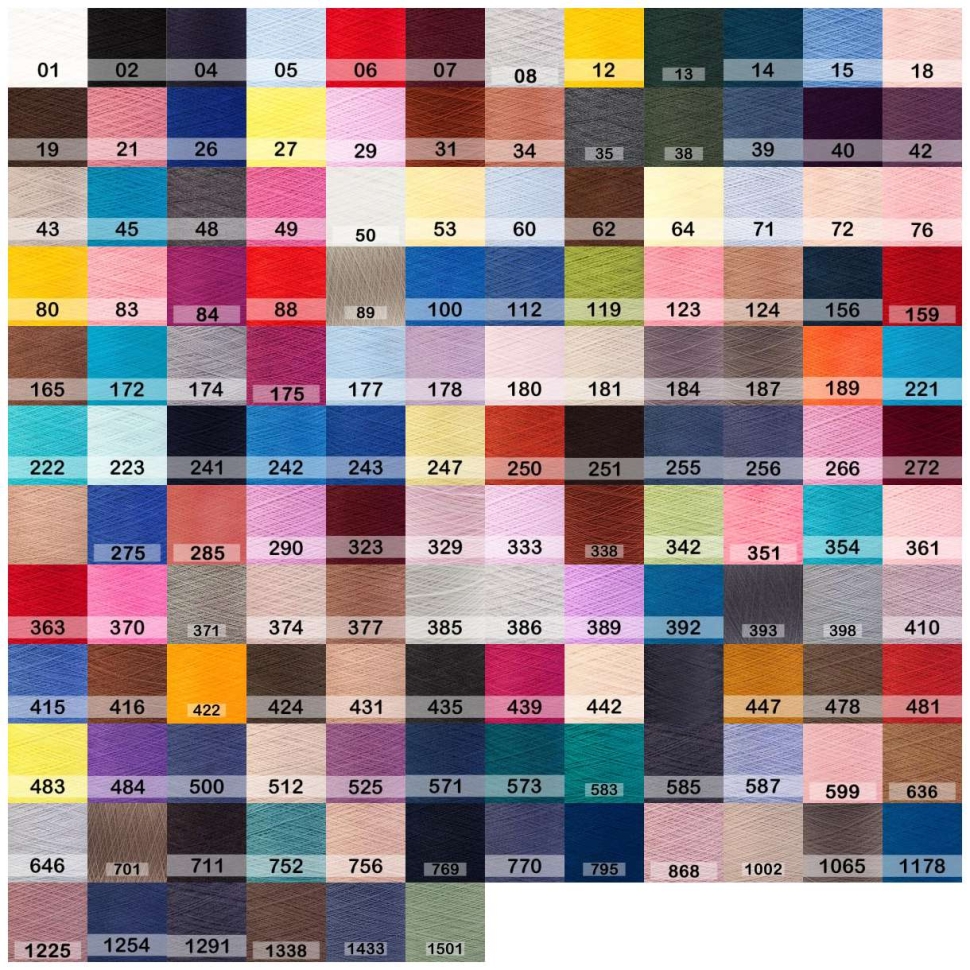 Цвет : 01 Т.ЗЕЛЕНЫЙ, 02 ЗЕЛЕНОЕ ЯБЛОКО, 03 ЖЕЛТО-ЗЕЛЕНЫЙ, 04 ЖЕЛТЫЙ, 05 ОРАНЖЕВЫЙ, 06 КРАСНЫЙ, 08 СИРЕНЬ, 10 СИНИЙ, 11 СИНИЙ САПФИР, 12 ПЕТРОЛЬ, 13 СВ.ГОЛУБОЙ, 14 СВ.СЕРЫЙ, 15 Т.СЕРЫЙ, 16 ЧЕРНЫЙ, 17 Т.КОРИЧНЕВЫЙ, 18 СЕРО-БЕЖЕВЫЙ, 20 СВ.ЗЕЛЕНЫЙ, 21 ГВОЗДИКА, 22 МАЛИНОВЫЙ, 26 БЕЛЫЙ, 27 ХАКИ, 28 БИРЮЗОВЫЙ, 29 СИНЕ-БИРЮЗОВЫЙ, 31 КОРИЧНЕВЫЙ КРАСНЫЙ, 32 СВ.КОРИЧНЕВЫЙ, 33 ЖЕЛТО-ОРАНЖЕВЫЙ, 34 ОРАНЖЕВО-КРАСНЫЙ, 37 Т.СИНЕ-ЗЕЛЕНЫЙ, 38 ЗЕЛЕНЫЙ ПАСТЕЛЬ, 40 ЯГОДНЫЙ, 41 ЗЕЛЕНЫЙ, 42 СИНИЙ, 43 Т.СИНИЙ, 44 МЯТНО-БИРЮЗОВЫЙ, 45 СЕРЕБРИСТО-СЕРЫЙ, 46 ЭКРЮ, 47 КРАСНАЯ ВИШНЯ, 48 РОЗОВЫЙ, 49 КОРИЦА, 50 МЯГКО- СИНИЙ, 52 СВ.ЖЕЛТЫЙ, 53 КАРРИ ЖЕЛТЫЙ, 54 Т.ОЛИВКОВЫЙ, 55 БЕЖЕВЫЙ, 56 СЕРЫЙ, 57 ФИАЛКА, 58 ЧЕРНО-КРАСНЫЙ, 60 КОРАЛЛОВЫЙ, 61 БЛ.ЖЕЛТЫЙ, 63 СЕРО-КОРИЧНЕВЙ, 64 БЕЖЕВЫЙ ПЕСОК, 65 КАРАМЕЛЬ, 66 БЕЖЕВЫЙ ЖЕМЧУГ, 67 ТРОСТНИК, 68 ЗЕЛЕНЫЙ, 69 ГОЛУБОЙ, 70 ФИОЛЕТОВЫЙ МЕЛАНЖ, 71 ПИНК, 72 МАНДАРИНОВЫЙ, 74 ПЫЛЬНЫЙ СИРЕНЕВЫЙ, 75 ГОЛУБОЙ, 76 СИНИЙ, 77 БИРЮЗОВЫЙ, 78 ЯРКИЙ ЛАЙМ, 79 ПЕРСИКОВЫЙ, 80 АПЕЛЬСИН, 81 КРАСНЫЙ, 82 ЯР.РОЗОВЫЙ, 83 СИРЕНЕВЫЙ, 84 ЛАВАНДОВЫЙ, 85 ЛАЗУРЬ, 86 ЧЕРНИЛЬНО-СИНИЙ, 87 ЗЕЛЕНЫЙ, 88 ЖЕЛТОК, 89 ОРАНЖЕВЫЙ, 90 ЯРКИЙ КОРАЛЛ, 91 ЧАЙНАЯ РОЗА, 92 СВ.СИРЕНЕВЫЙ, 93 СЕРО БЕЖЕВЫЙ, 94 КАРРИ, 95 ЖЕЛТЫЙ, 96 НЕОНОВО-ЗЕЛЕНЫЙ, 97 НЕФРИТ, 99 АБРИКОС, 100 КРАСНЫЙ, 217 ГУСТО ФИОЛЕТОВЫЙ, 218 СЕРО-ФИОЛЕТОВЫЙ, 219 СВ.ИЗУМРУД, 222 БЕЖЕВЫЙ, 223 РЖАВЧИНА, 224 КОРИЧНЕВЫЙ ШОКОЛАД