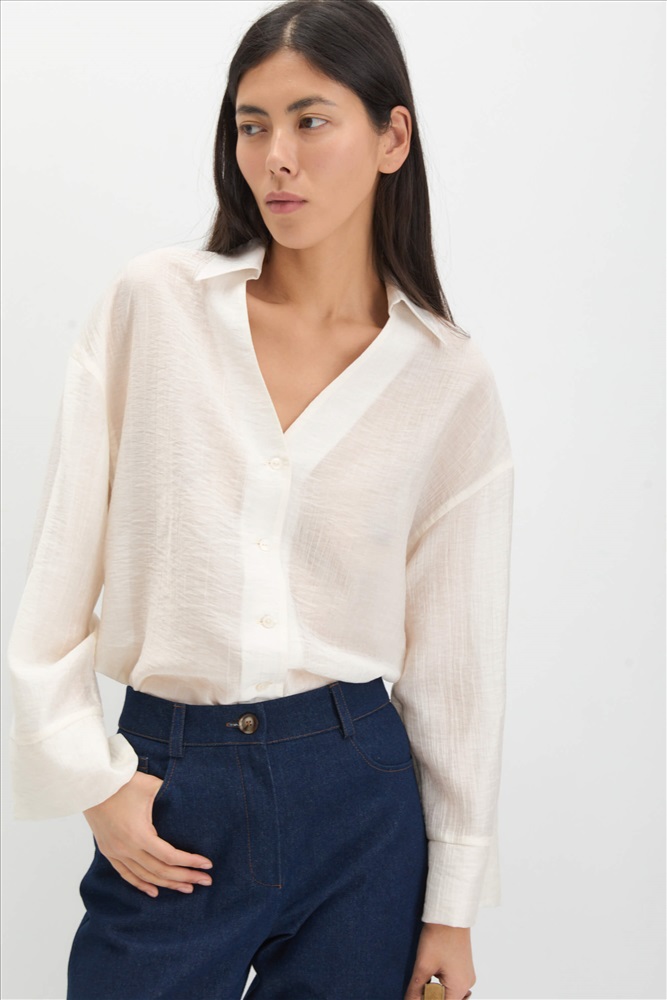 Очень красивая рубашка. Лёгкая, удобная. В размер, точно как на фото смотрится. Я довольна!