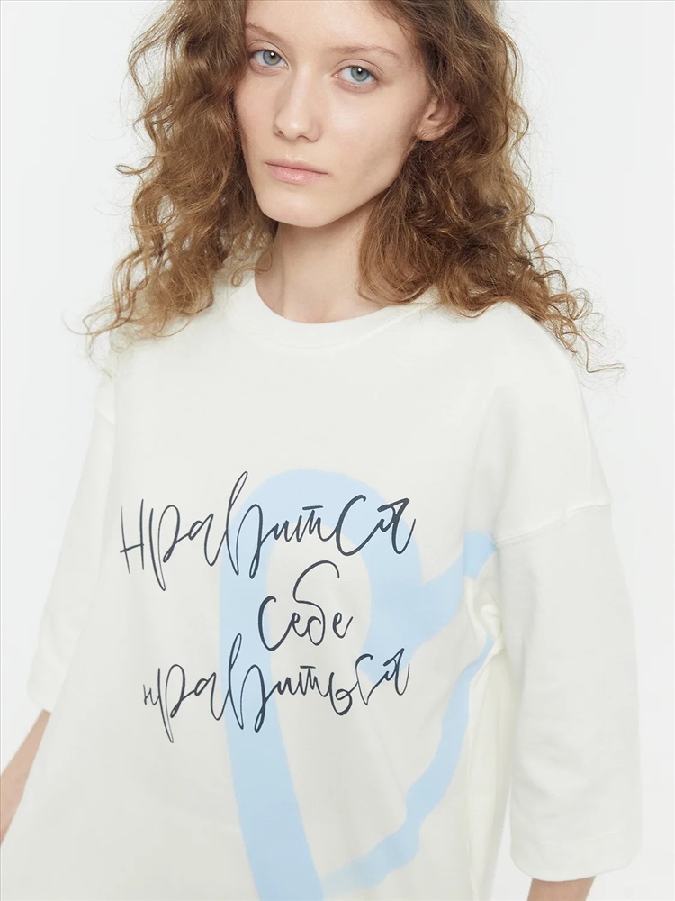 Футболка оч.стильная, такой эффект легкой потертости. И классная мотивирующая фраза-принт :) "Кто может, тот делает. Кто не может - тот критикует" :)