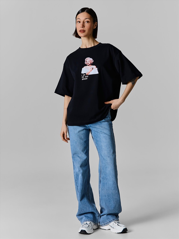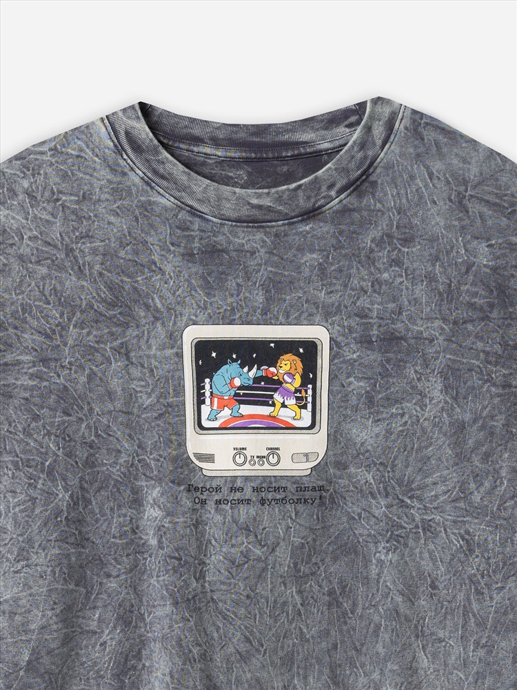 Футболка оч.стильная, такой эффект легкой потертости. И классная мотивирующая фраза-принт :) "Кто может, тот делает. Кто не может - тот критикует" :)