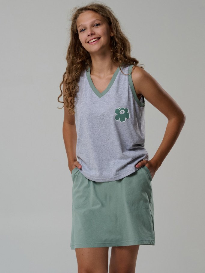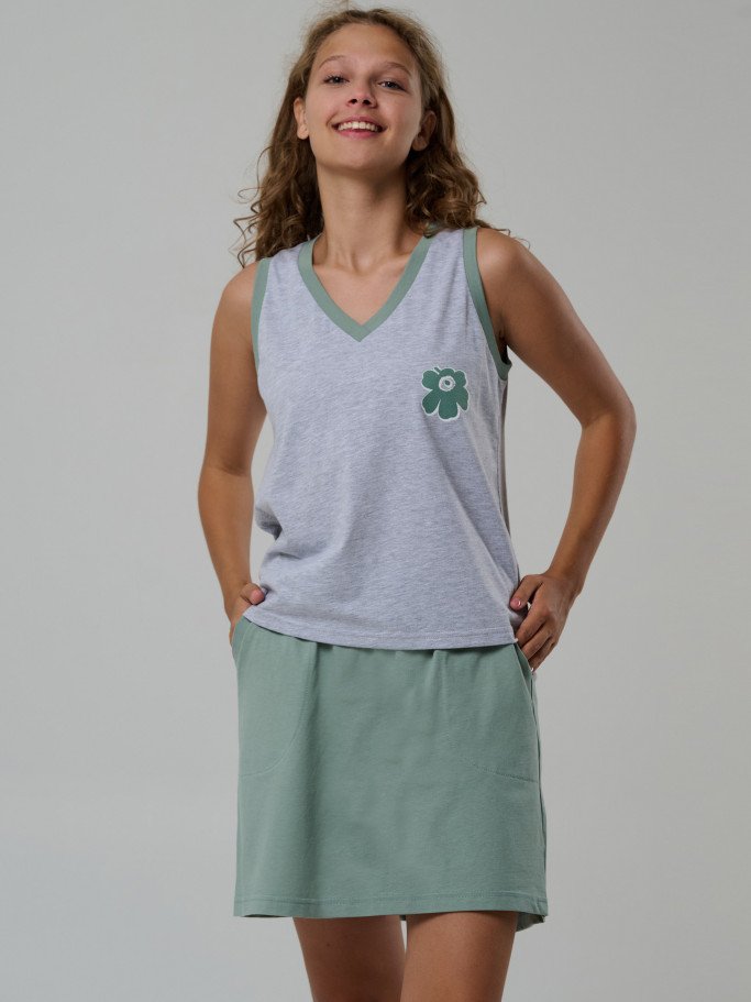 Состав : Майка-92% хб, 8% п/э, Юбка-100% хб
