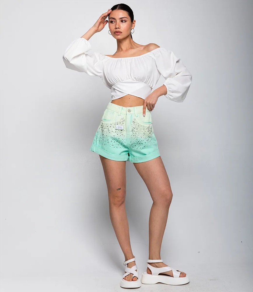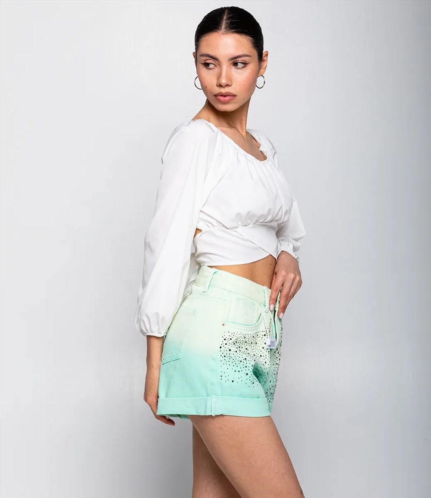 Джинсовые шорты #КТ6226, ментоловый 5 фото