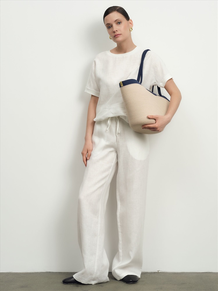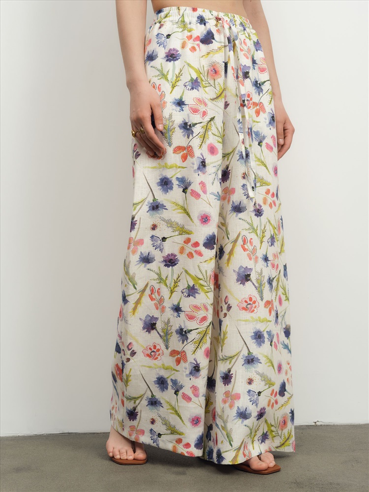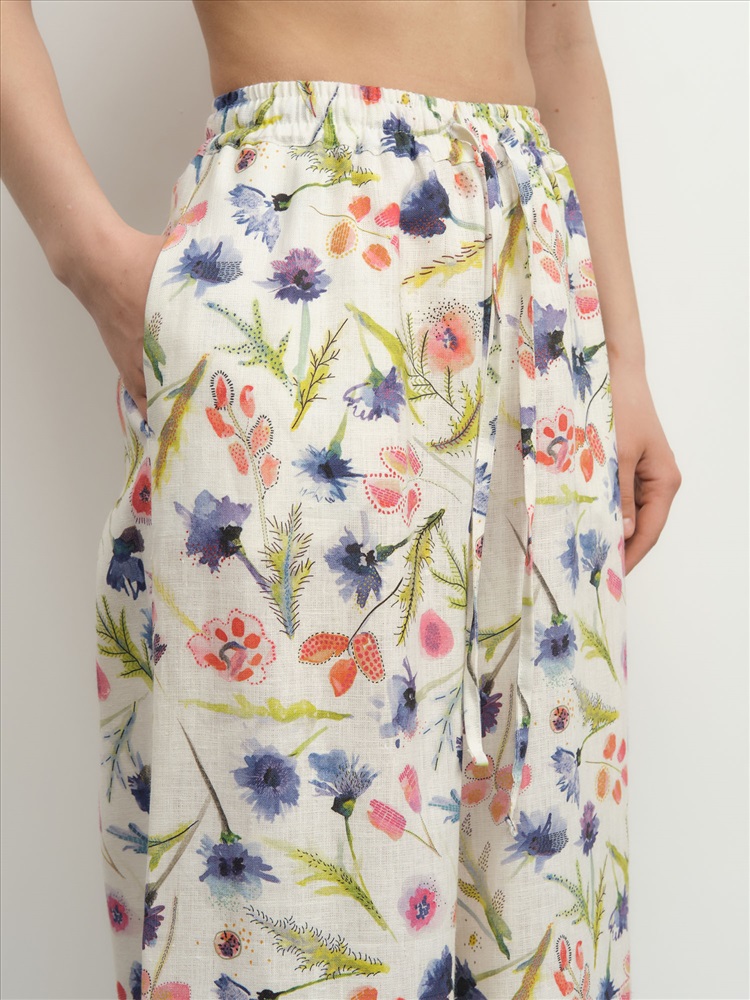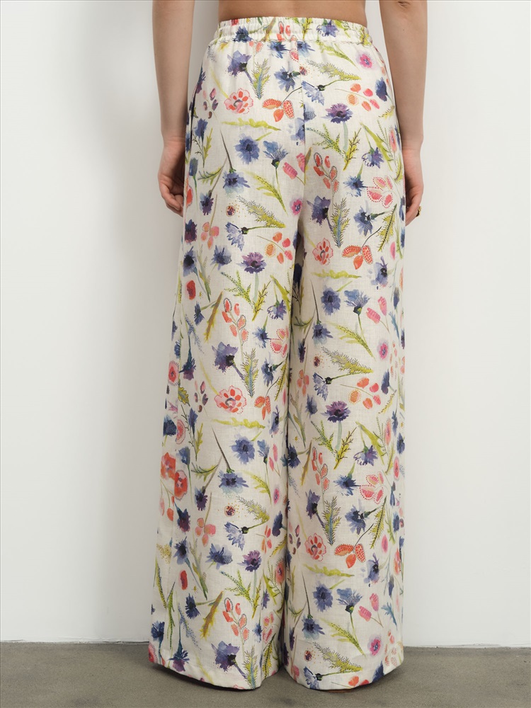 Брюки льняные 10367 с цветочным принтом 5 фото