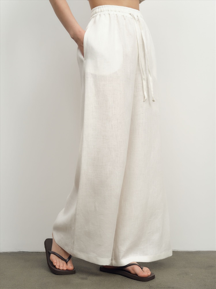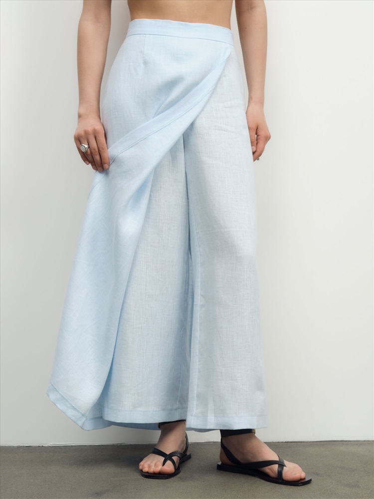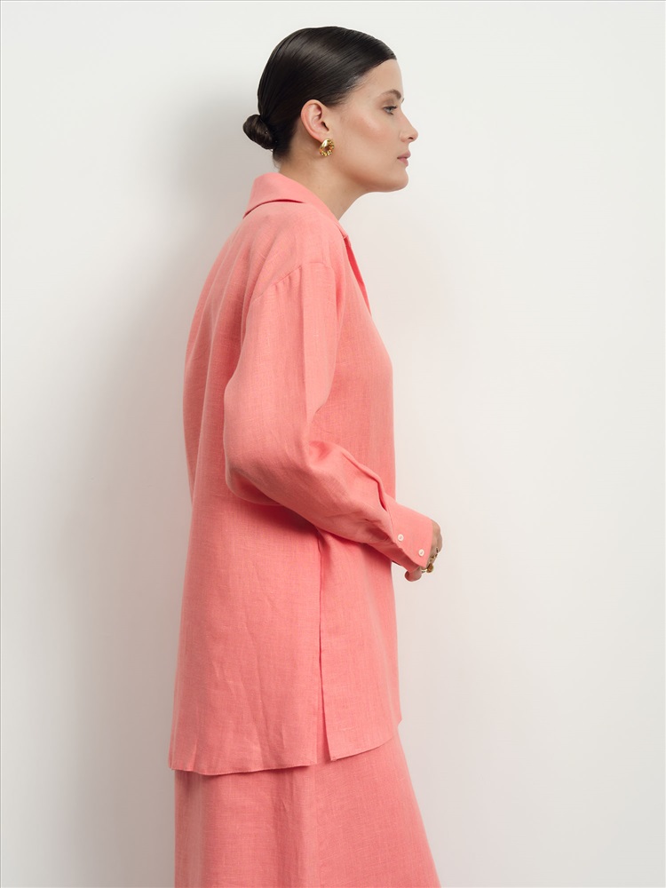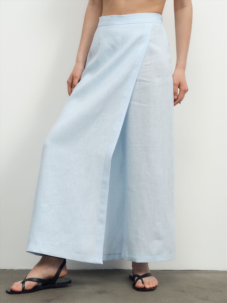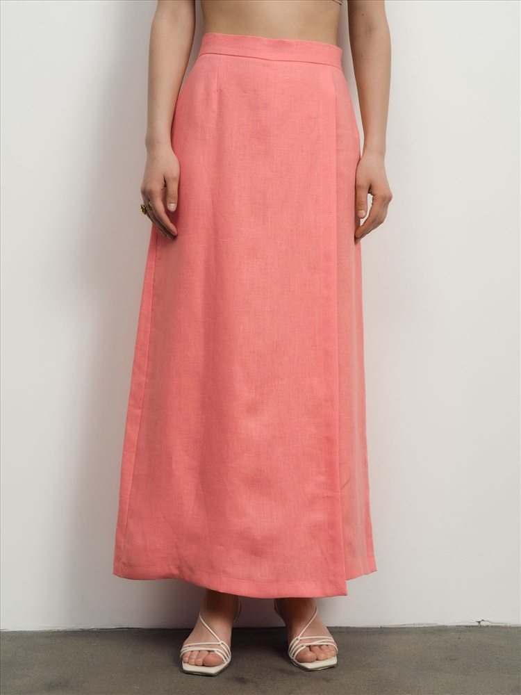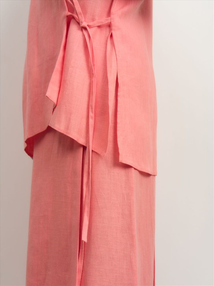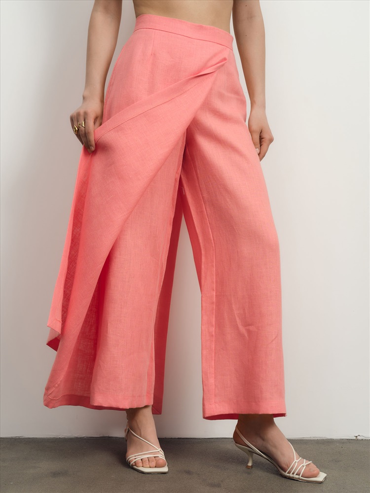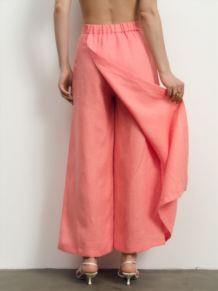 Юбка-брюки льняная 10990 коралловая 8 фото