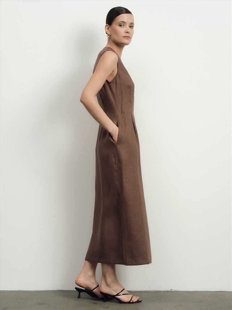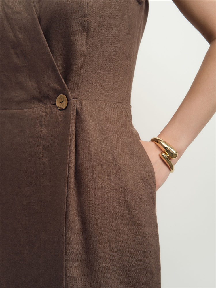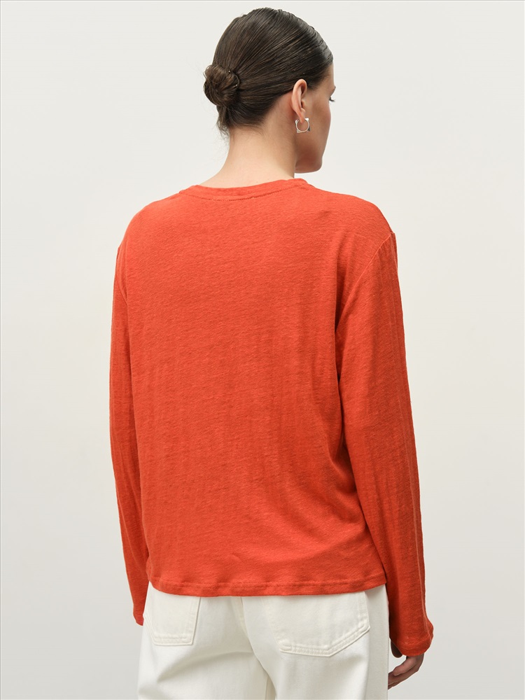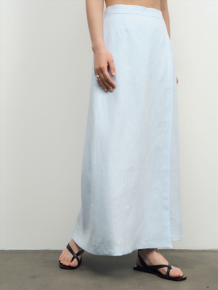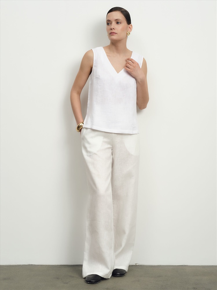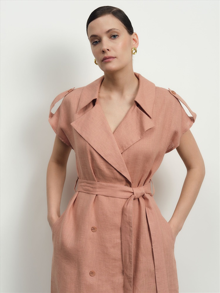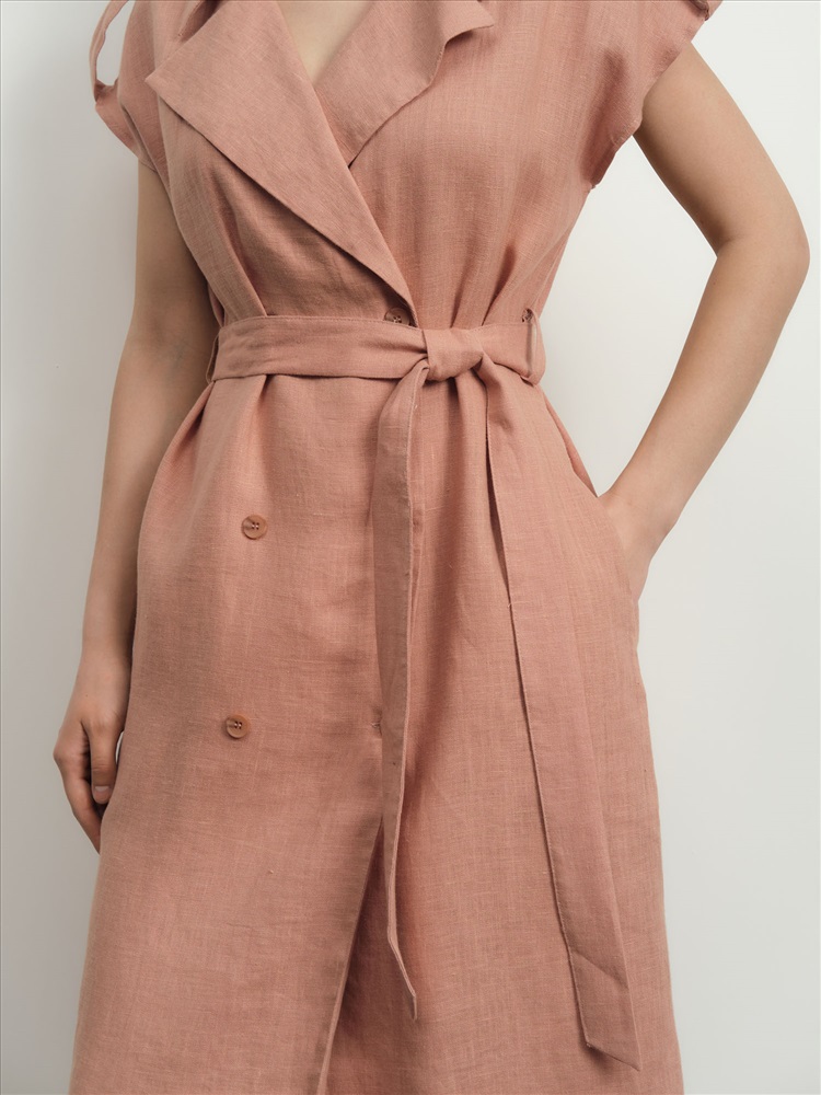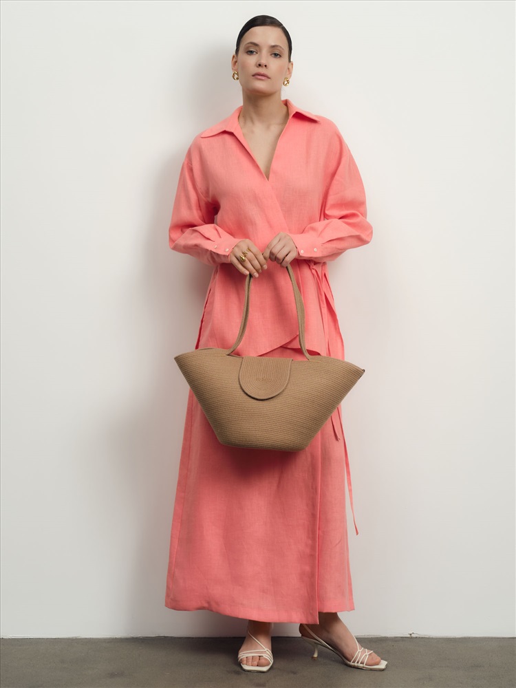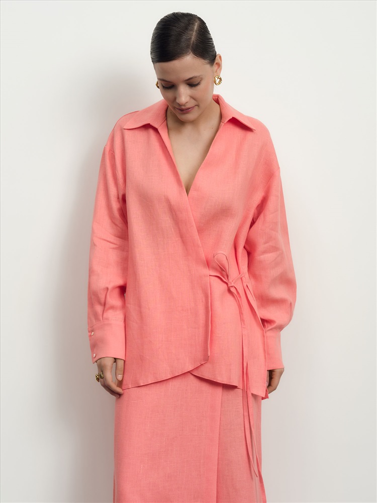 Юбка-брюки льняная 10990 коралловая 8 фото