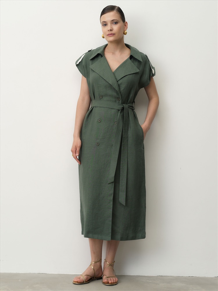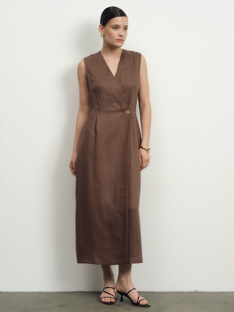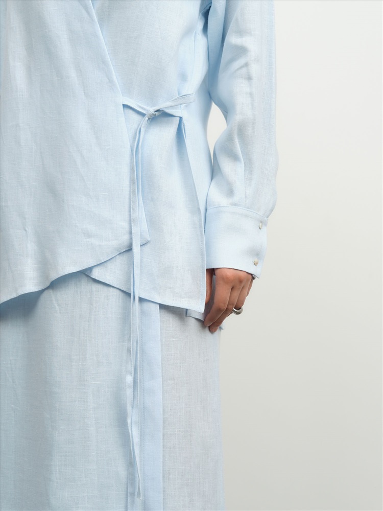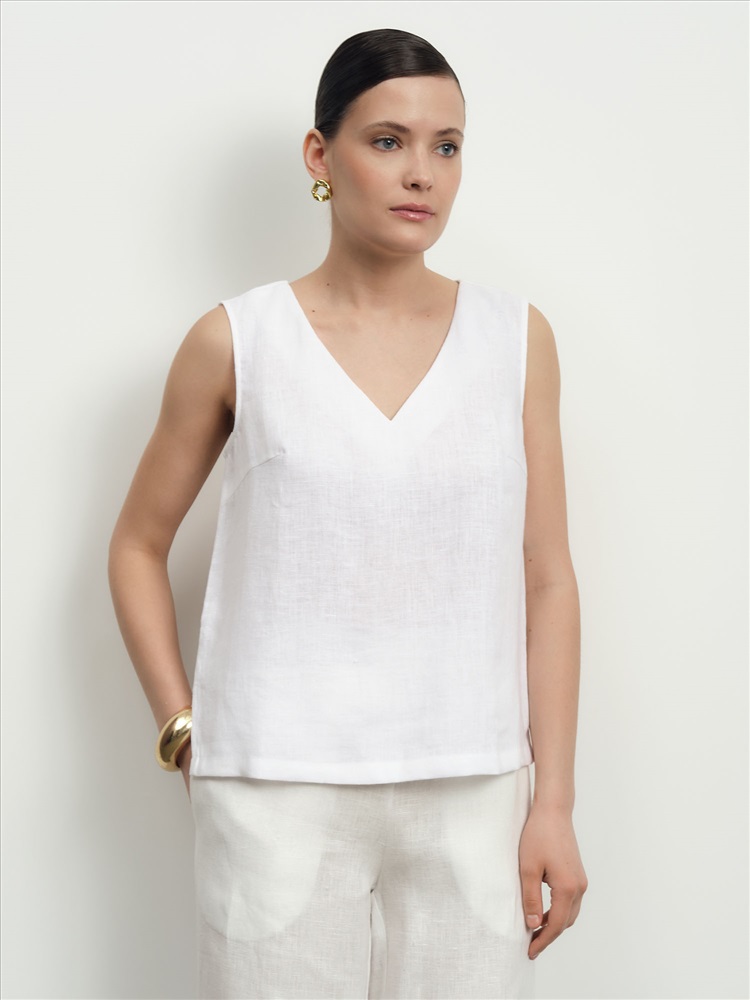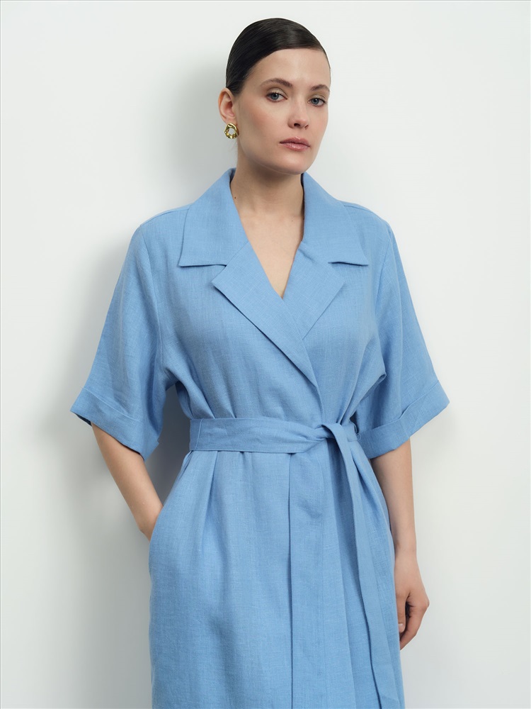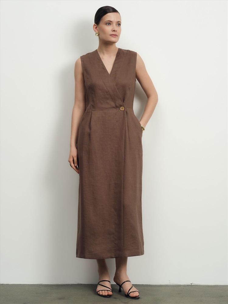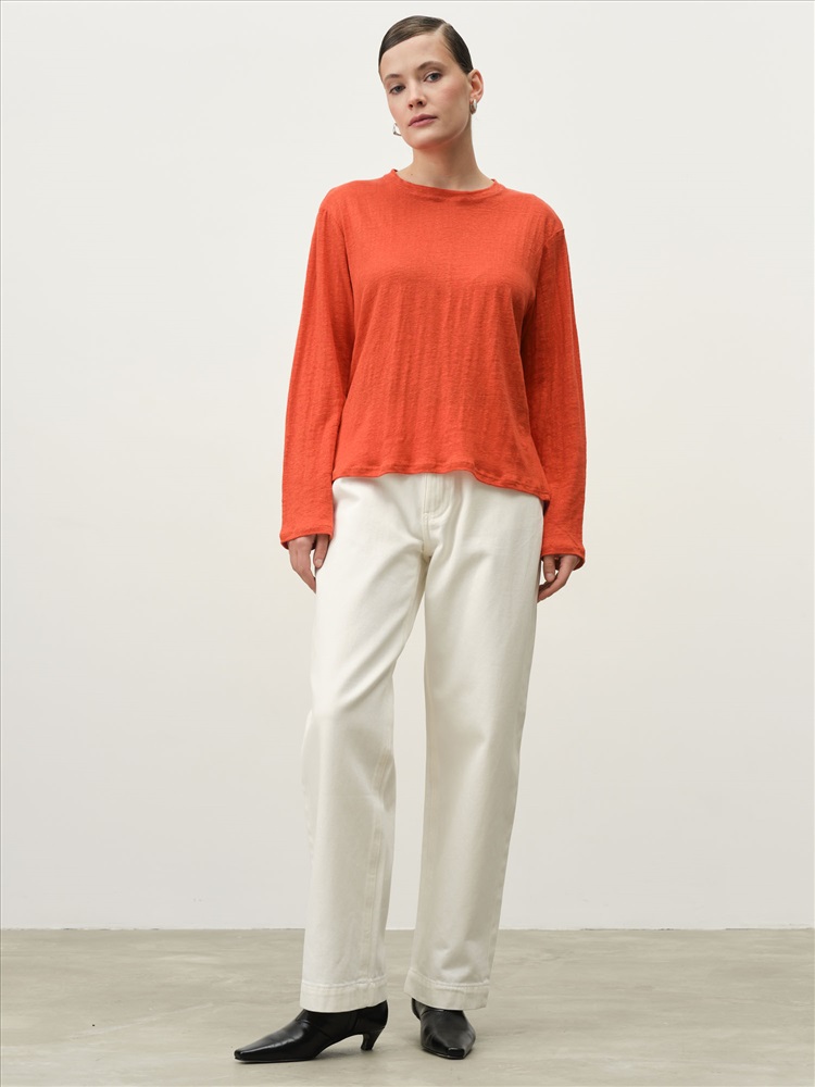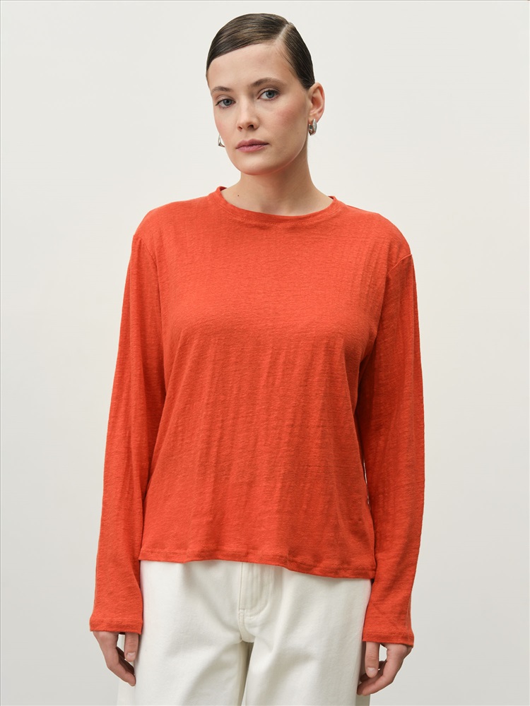 Юбка-брюки льняная 10990 коралловая 8 фото