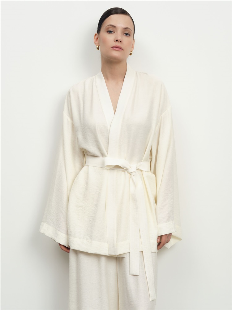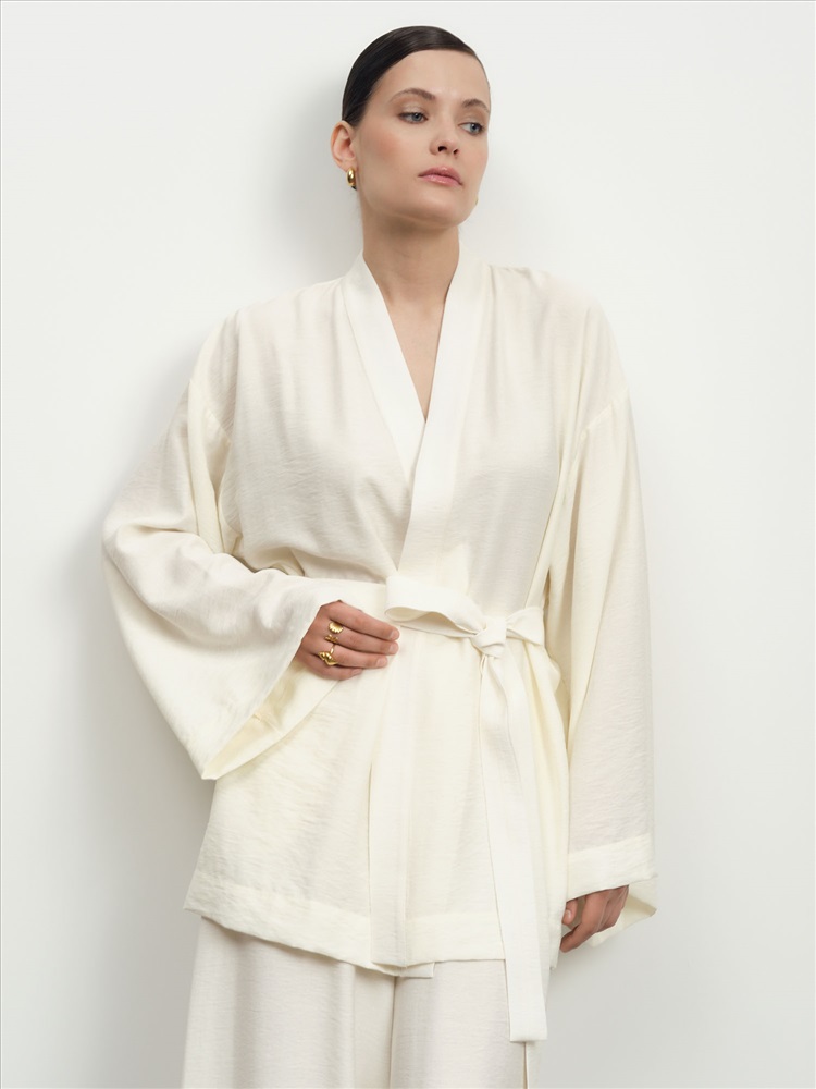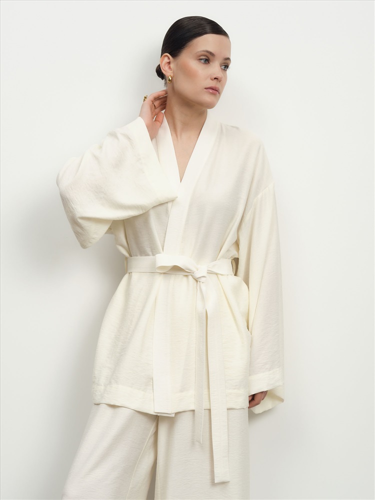 Жакет-кимоно из вискозы 42367 молочный 7 фото