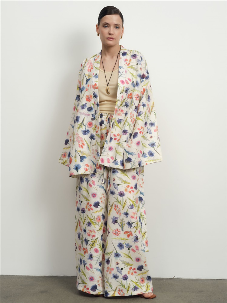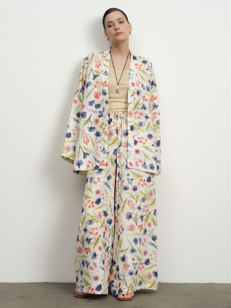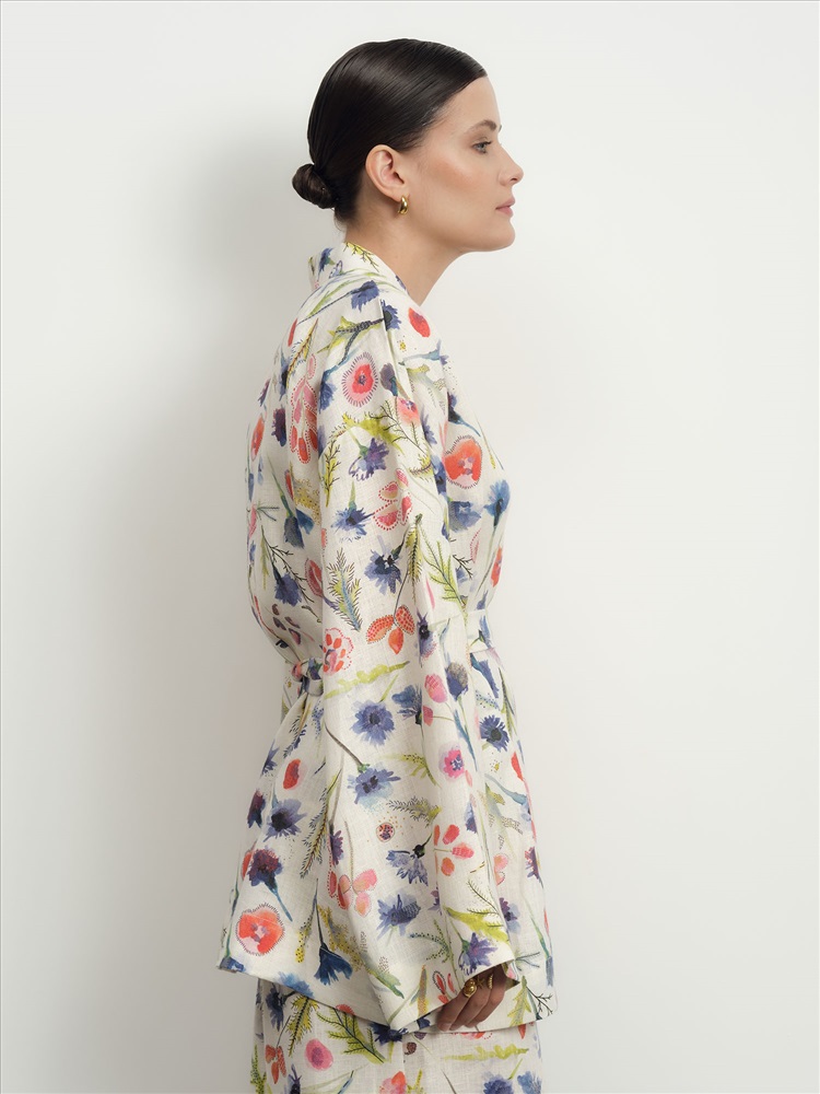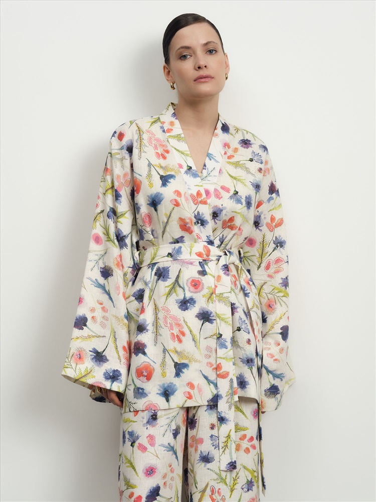 Жакет-кимоно льняное 42367 с цветочным принтом 5 фото